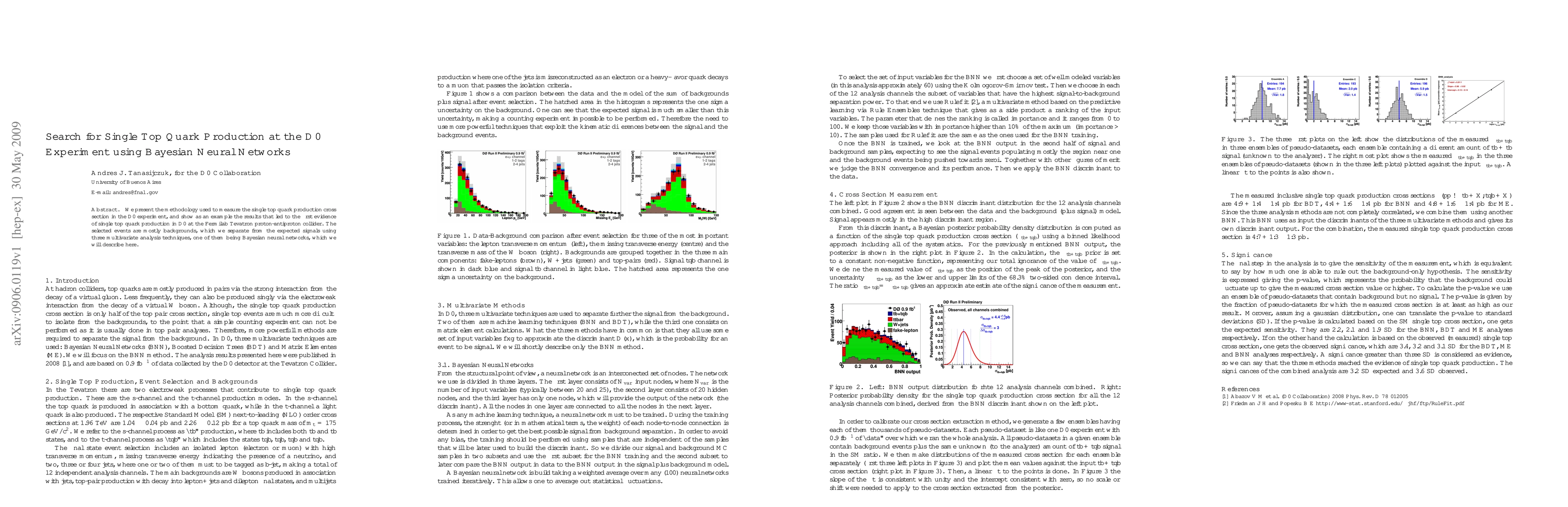 We present the methodology used to measure the single top quark production cross section in the D0 experiment, and show as an example the results that led to the first evidence of single top quark production in D0 at the Fermilab Tevatron proton-antiproton collider. The selected events are mostly backgrounds, which we separate from the expected signals using three multivariate analysis techniques, one of them being Bayesian neural networks, which we will describe here.
