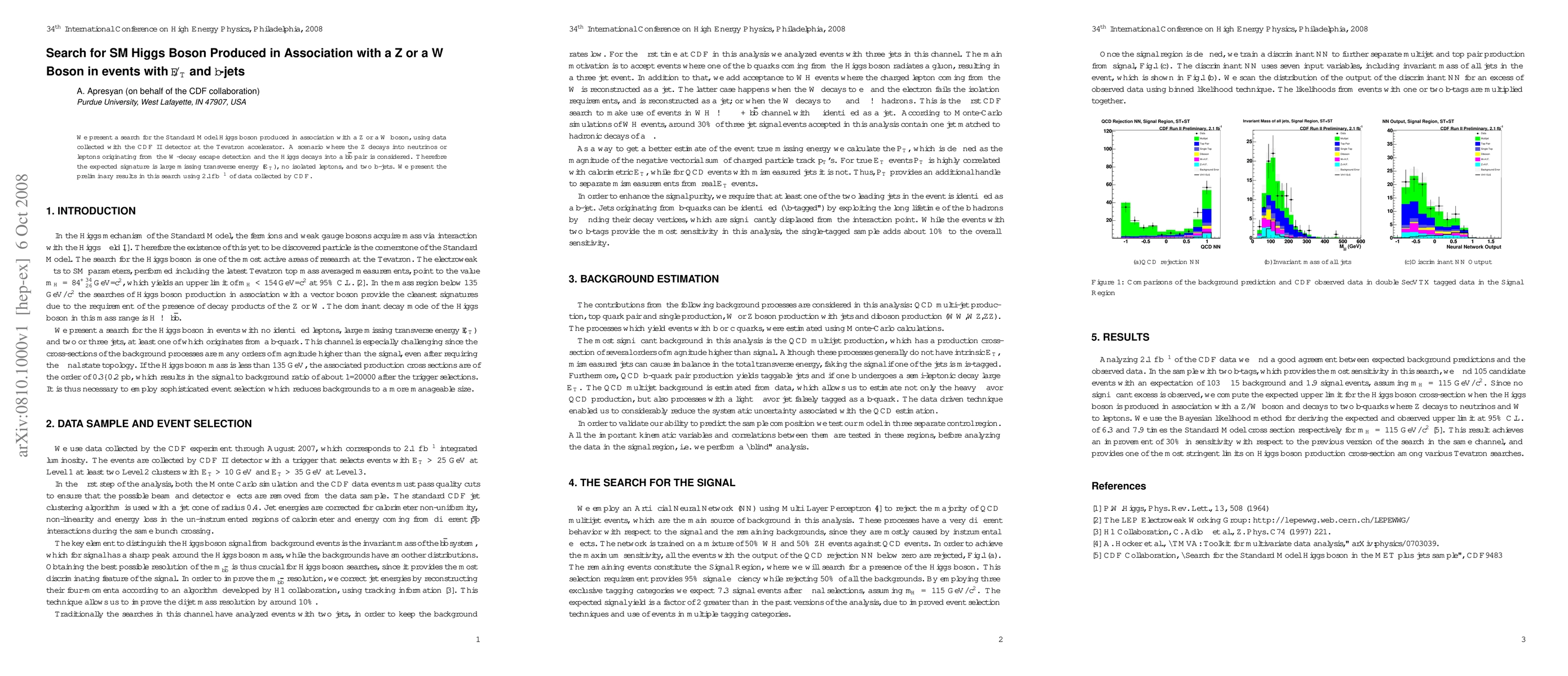 We present a search for the Standard Model Higgs boson produced in association with a Z or a W boson, using data collected with the CDF II detector at the Tevatron accelerator. A scenario where the Z decays into neutrinos or leptons originating from the W-decay escape detection and the Higgs decays into a $b\overline{b}$ pair is considered. Therefore the expected signature is large missing transverse energy ($\etmiss$), no isolated leptons, and two b-jets. We present the preliminary results in this search using 2.1$fb^{-1}$ of data collected by CDF.