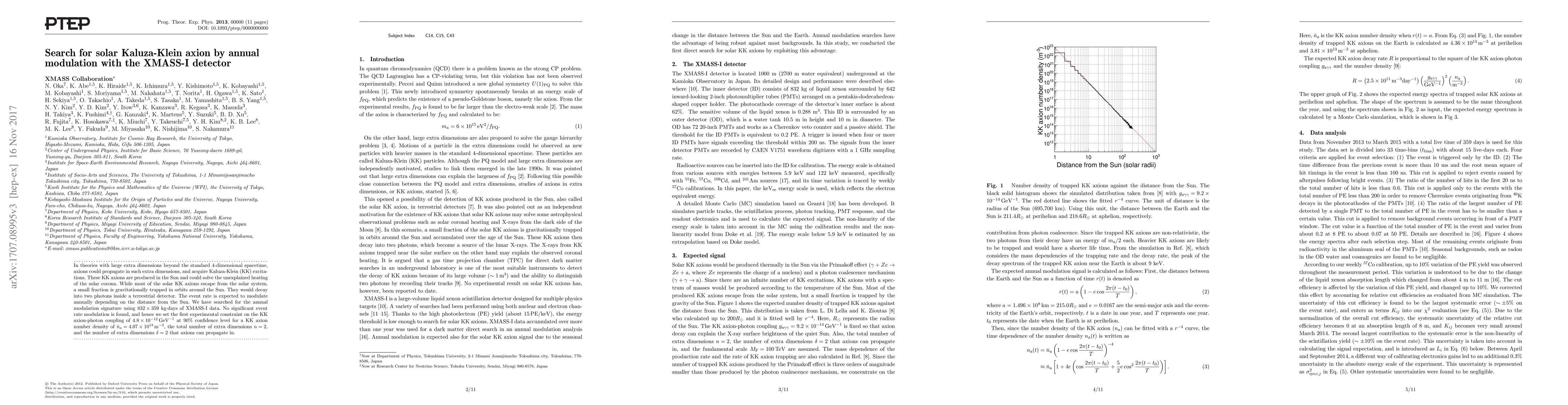 This paper investigates the annual modulation of solar Kaluza-Klein axions using the XMASS-I detector, aiming to detect their decay into photons. No significant modulation was found, leading to a new experimental constraint on the KK axion-photon coupling.