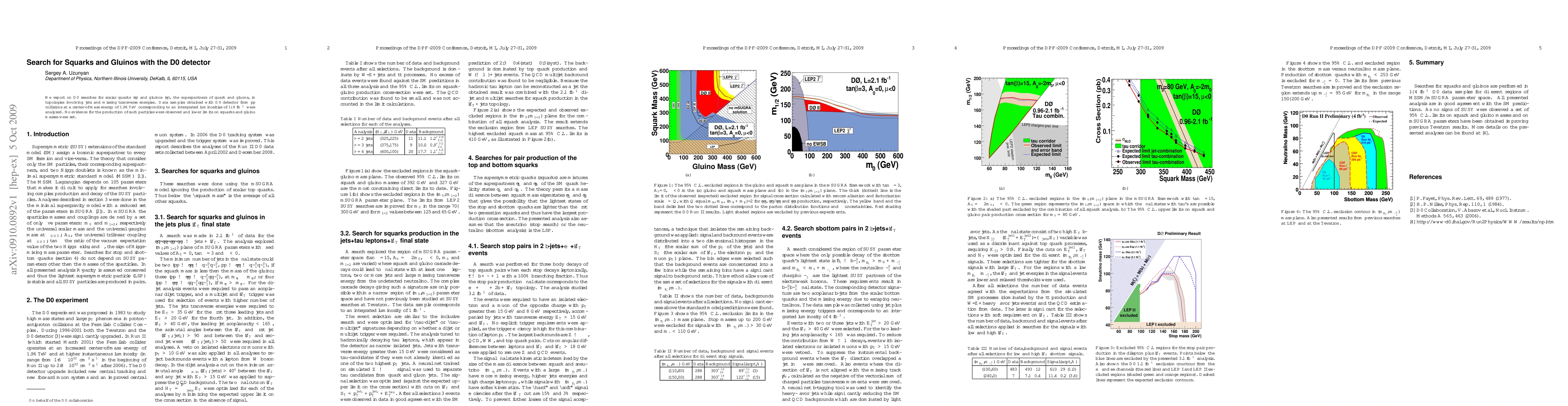 We report on D0 searches for scalar quarks (tilde-q) and gluinos (tilde-g), the superpartners of quark and gluons, in topologies involving jets and missing transverse energies. Data samples obtained with D0 detector from proton anti-proton collisions at a center-of-mass energy of 1.96 TeV corresponding to an intergrated luminosities of 1-4 inverse-fb were analyzed. No evidence for the production of such particles were observed and lower limits on squarks and gluino masses were set.