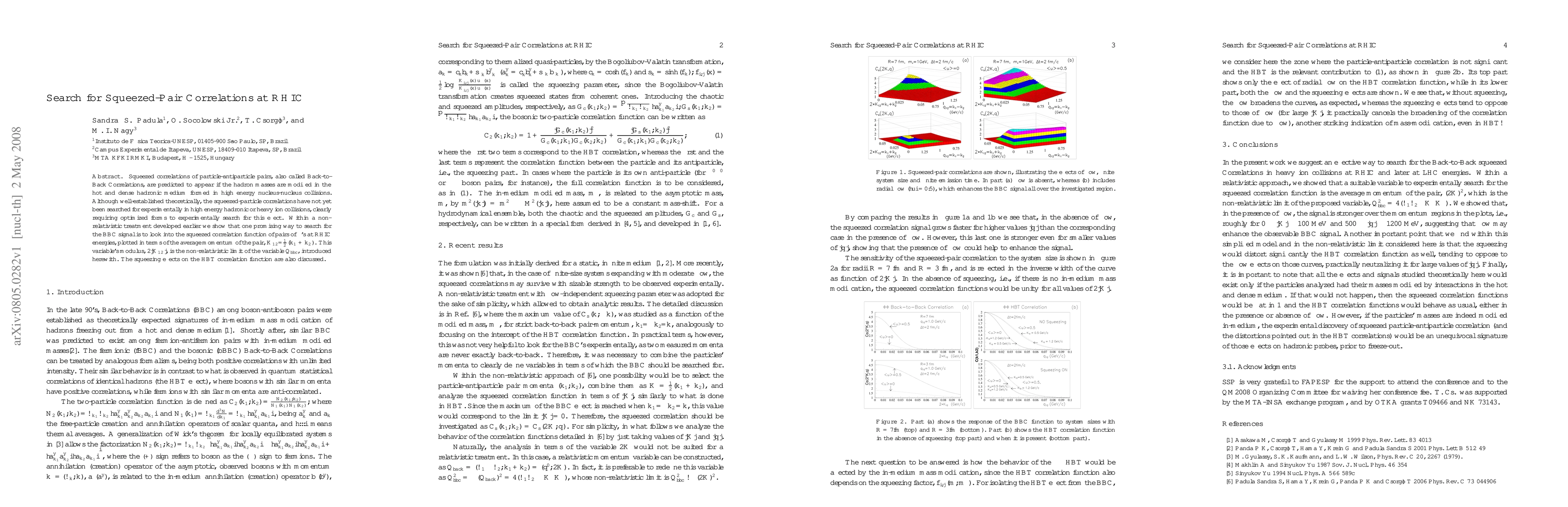 This research explores the potential detection of squeezed-pair correlations, or Back-to-Back Correlations, in high-energy nucleus-nucleus collisions at RHIC. The study suggests that these correlations, indicative of modified hadron masses in a hot and dense medium, could be identified through the analysis of phi-meson pairs, using the average momentum variable 2|K12| as a key measure. The findings contribute to the theoretical framework for understanding these phenomena in heavy ion collisions.