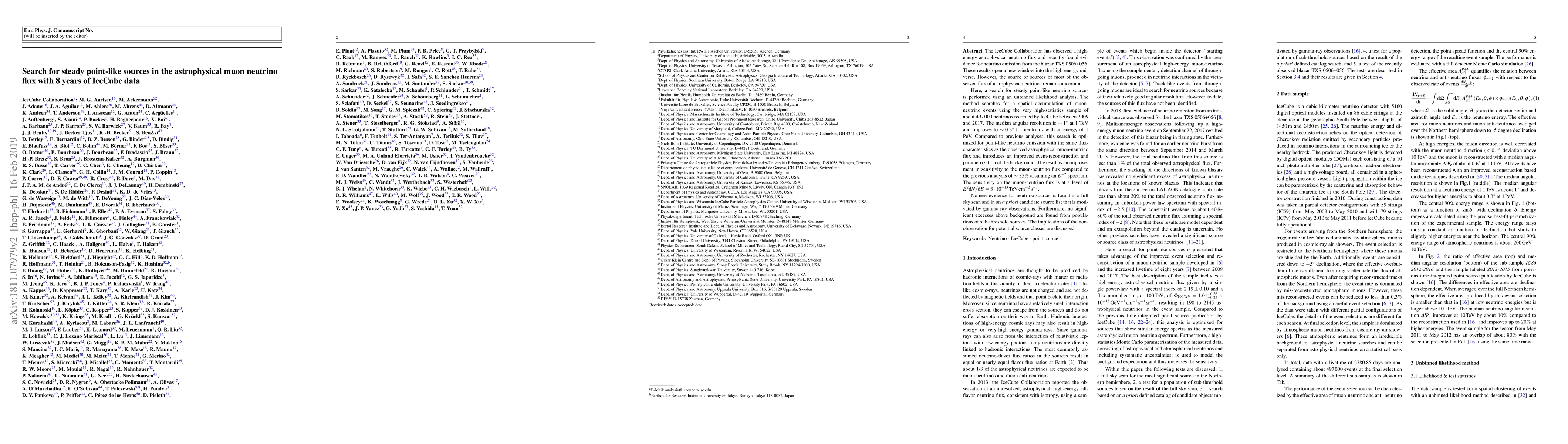 The IceCube Collaboration analyzed 8 years of data to search for steady point-like sources of astrophysical muon neutrinos, but found no new evidence for additional sources beyond blazar TXS 0506+056. The improved analysis increased sensitivity by ~35% for an $E^{-2}$ spectrum.
