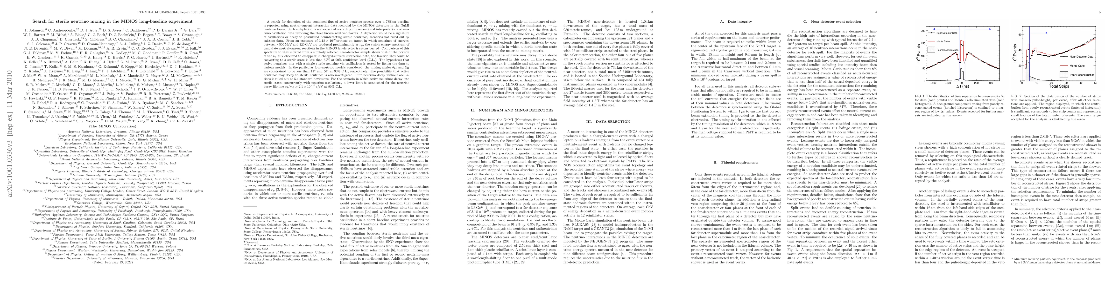 The MINOS experiment searched for sterile neutrino mixing by analyzing the depletion of active neutrino flux over a 735 km baseline, finding no evidence for oscillations or decay to sterile neutrinos. The study constrained mixing angles and established limits on decay lifetimes, ruling out pure decay at 5.4 standard deviations.