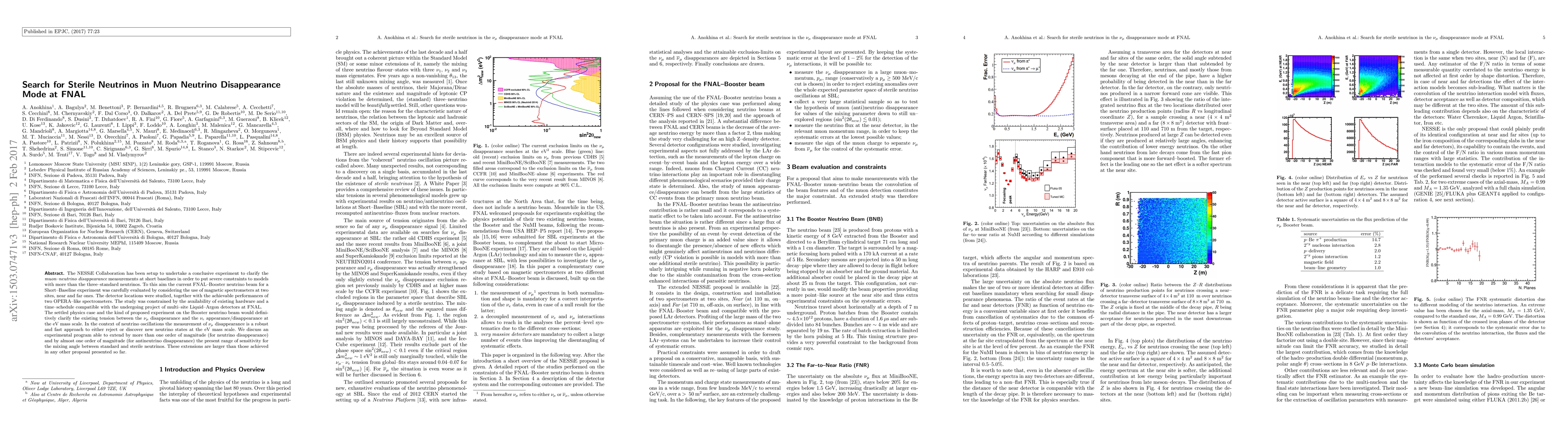 The NESSiE Collaboration aims to clarify muon-neutrino disappearance measurements at short baselines to constrain models with sterile neutrinos. The proposed experiment on the FNAL-Booster neutrino beam, using magnetic spectrometers, seeks to extend the sensitivity for detecting sterile neutrinos by more than an order of magnitude.