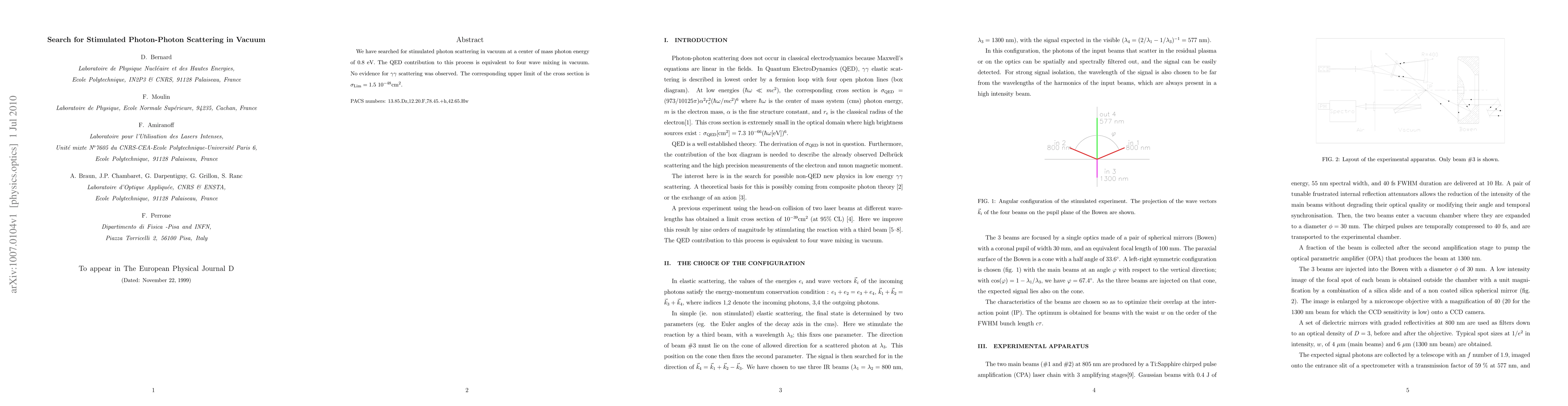 This study investigates stimulated photon-photon scattering in vacuum at a photon energy of 0.8 eV, finding no evidence for gamma-gamma scattering, which sets an upper limit on the cross section at 1.5 x 10^-48 cm².