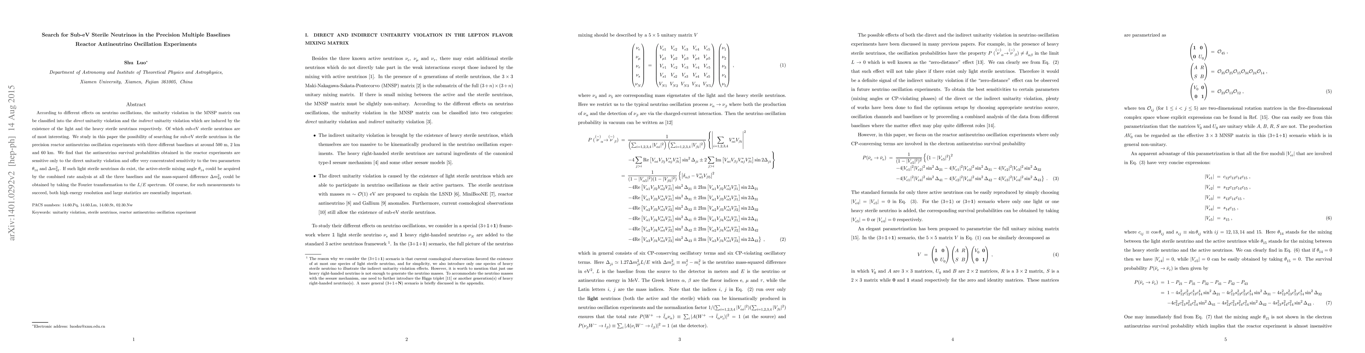 This paper investigates the potential to detect sub-eV sterile neutrinos through precision reactor antineutrino oscillation experiments at varying baselines. The study finds that these experiments are sensitive to direct unitarity violations, allowing for the determination of the active-sterile mixing angle and mass-squared difference, provided high resolution and large data samples are used.
