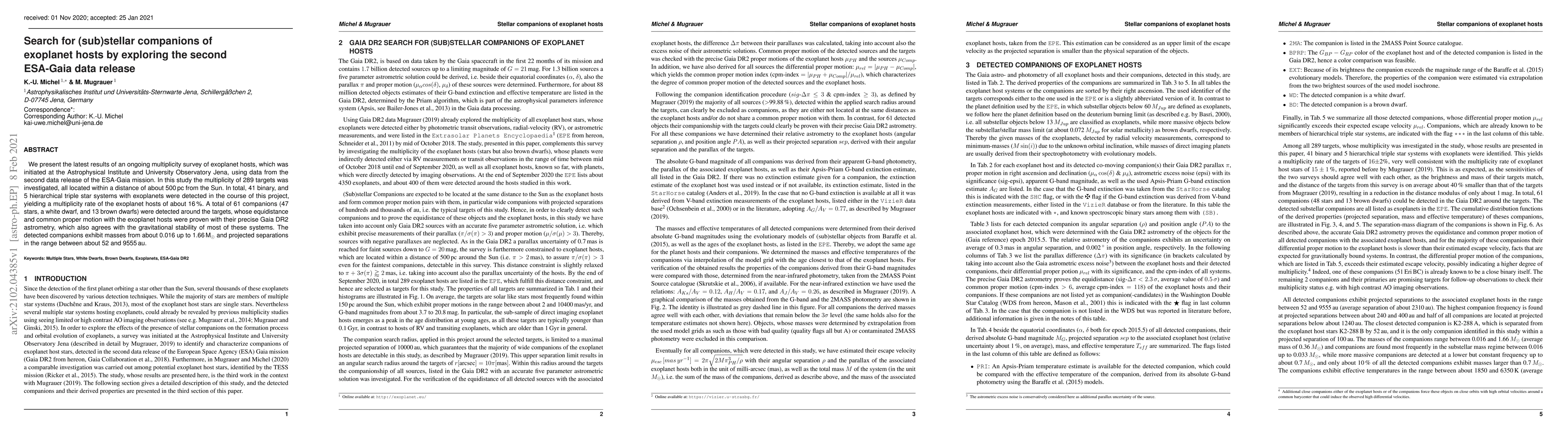The research demonstrates the effectiveness of Gaia DR2 astrometry in detecting and characterizing stellar companions to exoplanet hosts, providing precise measurements of their positions, proper motions, and masses.