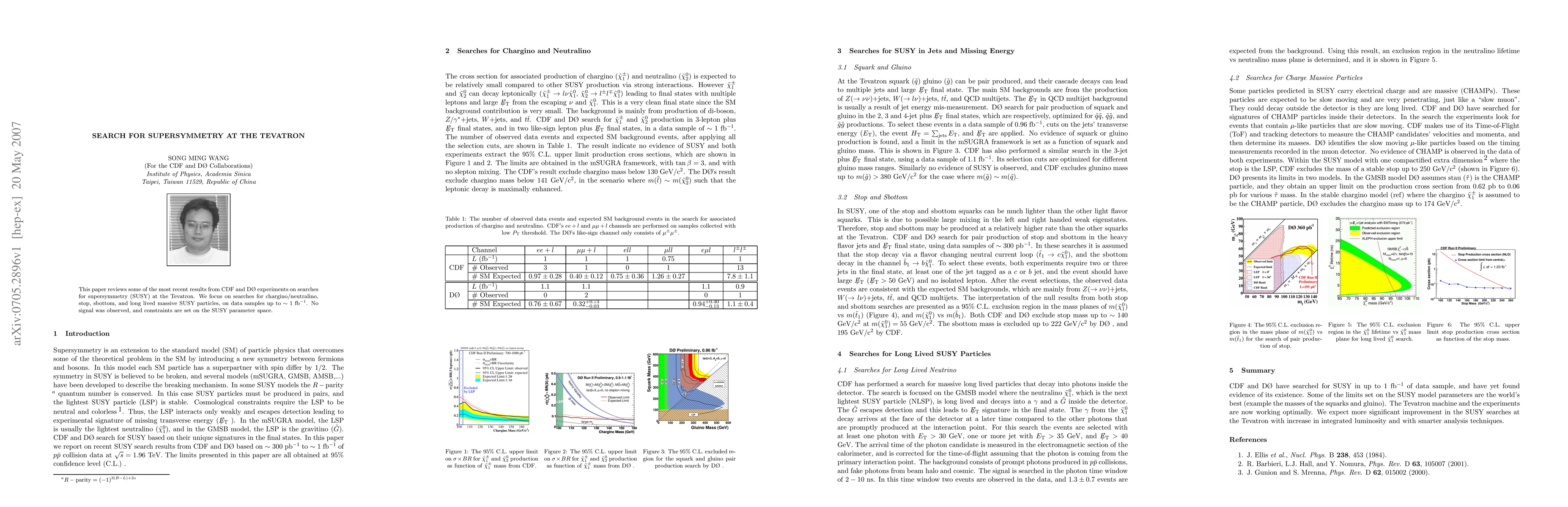 The paper presents detailed searches for various SUSY particles and sets stringent limits on their masses within different SUSY models, such as mSUGRA.