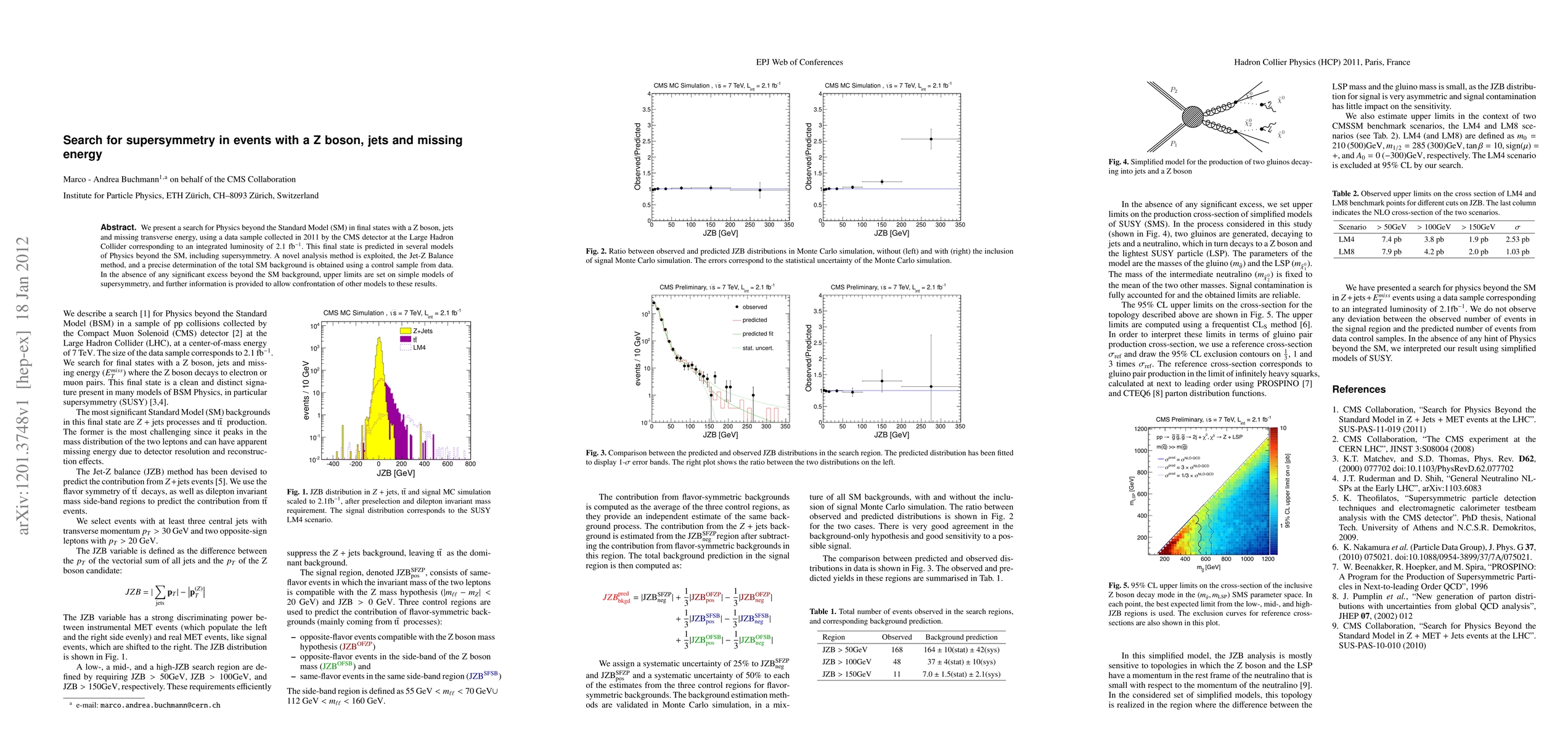 We present a search for Physics beyond the Standard Model (SM) in final states with a Z boson, jets and missing transverse energy, using a data sample collected in 2011 by the CMS detector at the Large Hadron Collider corresponding to an integrated luminosity of 2.1 /fb. This final state is predicted in several models of Physics beyond the SM, including supersymmetry. A novel analysis method is exploited, the Jet-Z Balance method, and a precise determination of the total SM background is obtained using a control sample from data. In the absence of any significant excess beyond the SM background, upper limits are set on simple models of supersymmetry, and further information is provided to allow confrontation of other models to these results.
