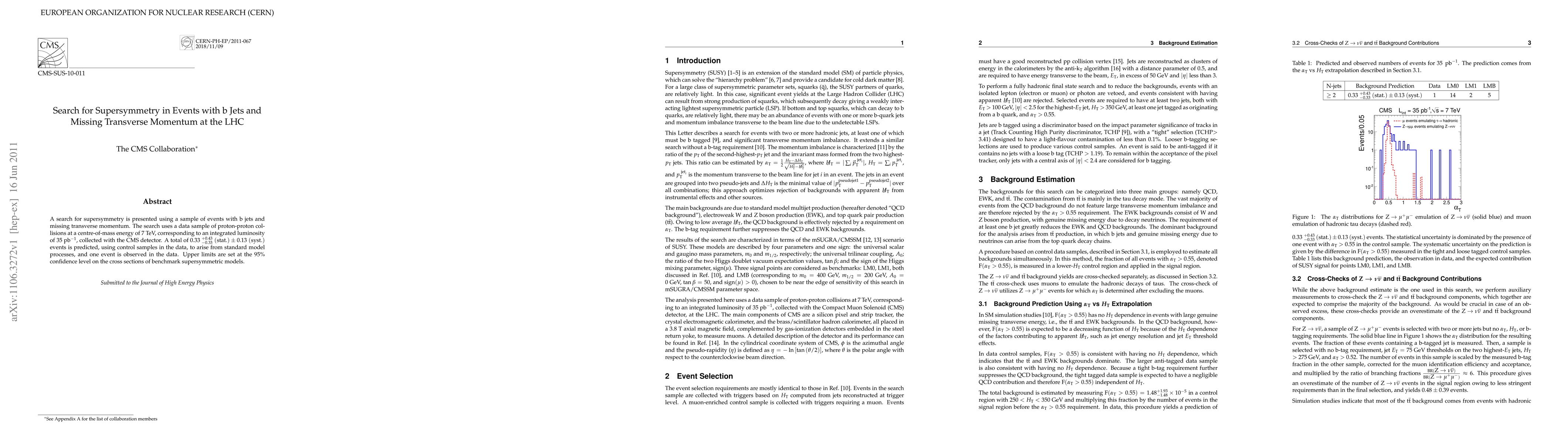 Researchers used data from proton-proton collisions at the LHC to search for supersymmetry, finding only one event and setting upper limits on cross-sections of benchmark models.