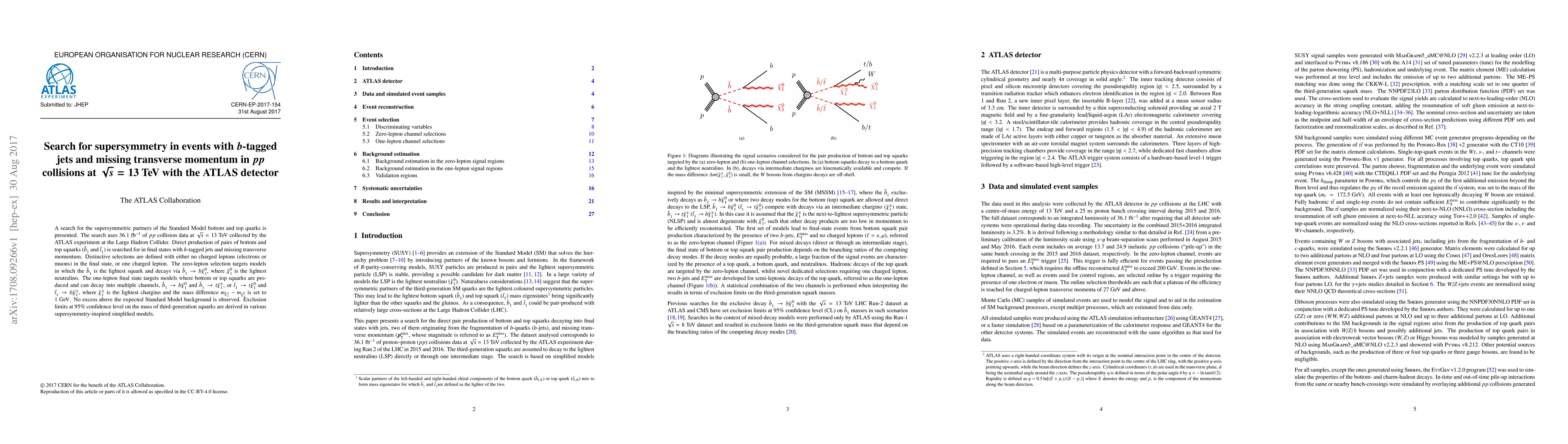A search for the supersymmetric partners of the Standard Model bottom and top quarks is presented. The search uses 36.1 fb$^{-1}$ of $pp$ collision data at $\sqrt{s}=13$ TeV collected by the ATLAS experiment at the Large Hadron Collider. Direct production of pairs of bottom and top squarks ($\tilde{b}_{1}$ and $\tilde{t}_{1}$) is searched for in final states with $b$-tagged jets and missing transverse momentum. Distinctive selections are defined with either no charged leptons (electrons or muons) in the final state, or one charged lepton. The zero-lepton selection targets models in which the $\tilde{b}_{1}$ is the lightest squark and decays via $\tilde{b}_{1} \rightarrow b \tilde{\chi}^{0}_{1}$, where $\tilde{\chi}^{0}_{1}$ is the lightest neutralino. The one-lepton final state targets models where bottom or top squarks are produced and can decay into multiple channels, $\tilde{b}_{1} \rightarrow b \tilde{\chi}^{0}_{1}$ and $\tilde{b}_{1} \rightarrow t \tilde{\chi}^{\pm}_{1}$, or $\tilde{t}_{1} \rightarrow t \tilde{\chi}^{0}_{1}$ and $\tilde{t}_{1} \rightarrow b \tilde{\chi}^{\pm}_{1}$, where $\tilde{\chi}^{\pm}_{1}$ is the lightest chargino and the mass difference $m_{\tilde{\chi}^{\pm}_{1}}- m_{\tilde{\chi}^{0}_{1}}$ is set to 1 GeV. No excess above the expected Standard Model background is observed. Exclusion limits at 95\% confidence level on the mass of third-generation squarks are derived in various supersymmetry-inspired simplified models.