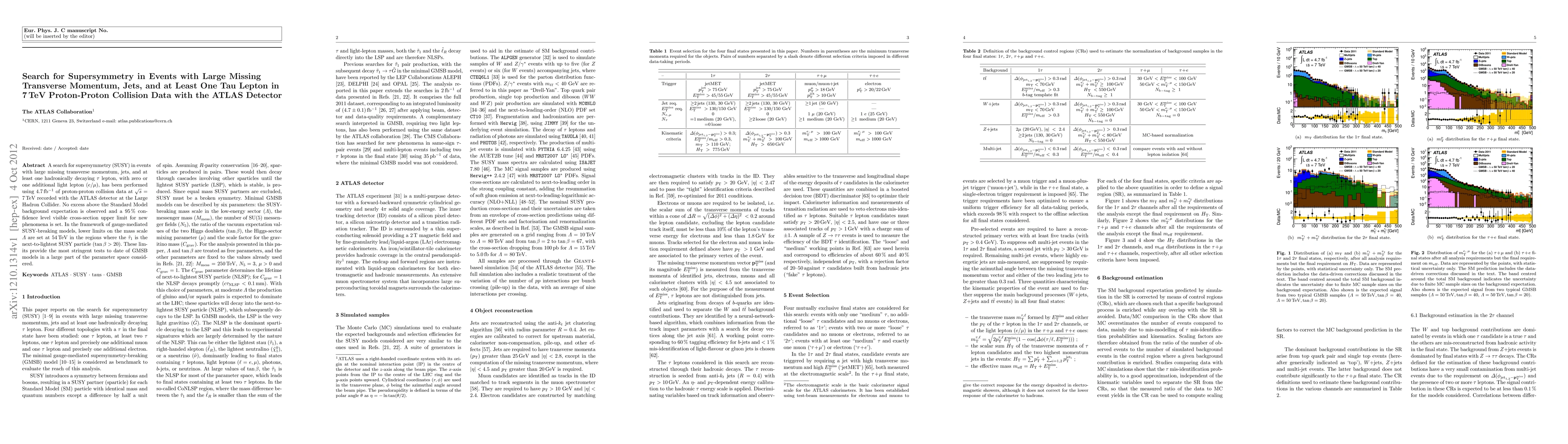 A search for supersymmetry (SUSY) in events with large missing transverse momentum, jets, and at least one hadronically decaying tau lepton, with zero or one additional light lepton (e/mu), has been performed using 4.7 fb-1 of proton-proton collision data at sqrt(s) = 7 TeV recorded with the ATLAS detector at the Large Hadron Collider. No excess above the Standard Model background expectation is observed and a 95% confidence level visible cross-section upper limit for new phenomena is set. In the framework of gauge-mediated SUSY-breaking models, lower limits on the mass scale Lambda are set at 54 TeV in the regions where the stau is the next-to-lightest SUSY particle (tan(beta) > 20). These limits provide the most stringent tests to date of GMSB models in a large part of the parameter space considered.