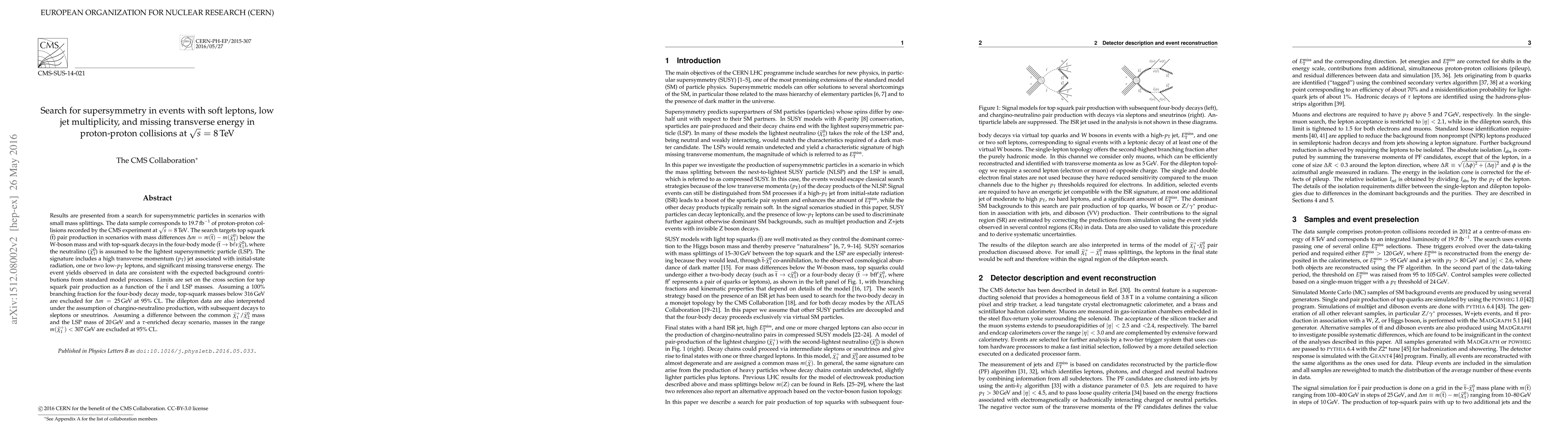 Researchers searched for supersymmetric particles in proton-proton collisions at 8 TeV, setting limits on top squark pair production and excluding masses above 316 GeV under certain assumptions.