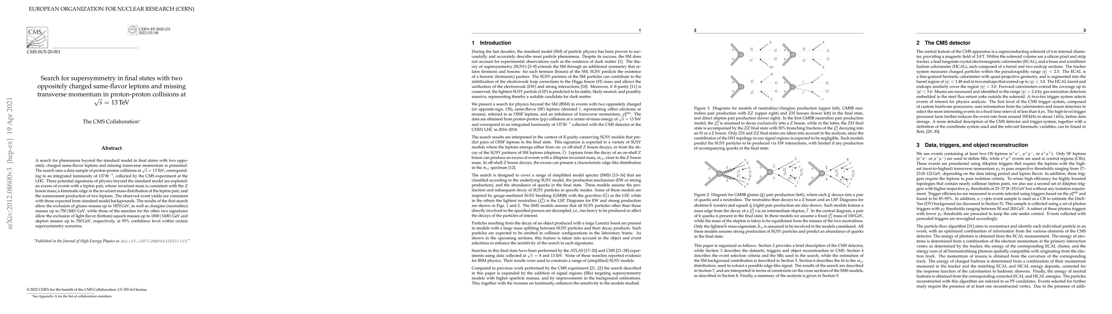 This paper reports a search for supersymmetry in proton-proton collisions at 13 TeV, focusing on final states with two oppositely charged same-flavor leptons and missing transverse momentum. The CMS experiment at the LHC collected data corresponding to 137 fb$^{-1}$, and no significant excess was observed beyond standard model predictions, leading to exclusion limits on gluino, chargino, neutralino, bottom squark, and slepton masses up to 1870 GeV, 800 GeV, 750 GeV, 1800 GeV, and 700 GeV, respectively.