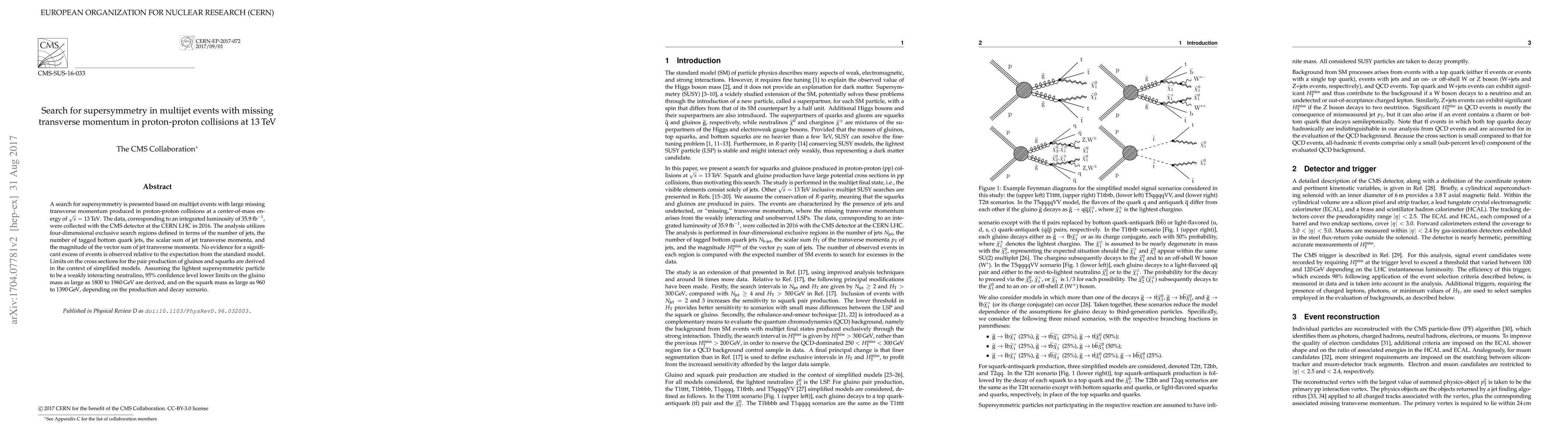 This paper reports a search for supersymmetry in proton-proton collisions at 13 TeV, focusing on multijet events with significant missing transverse momentum. No significant excess is observed, leading to new lower limits on gluino and squark masses up to 1960 GeV and 1390 GeV respectively.