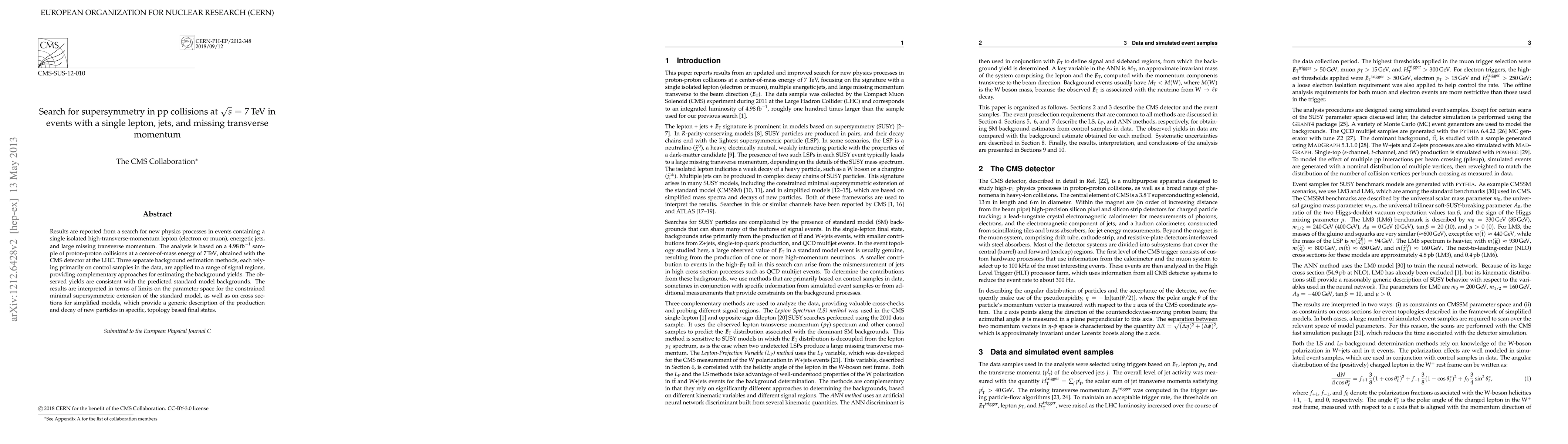 This paper reports a search for supersymmetry in proton-proton collisions at 7 TeV, focusing on events with a single high-transverse-momentum lepton, jets, and significant missing transverse momentum. No new physics signals are observed, leading to constraints on the parameter space of the constrained minimal supersymmetric model.