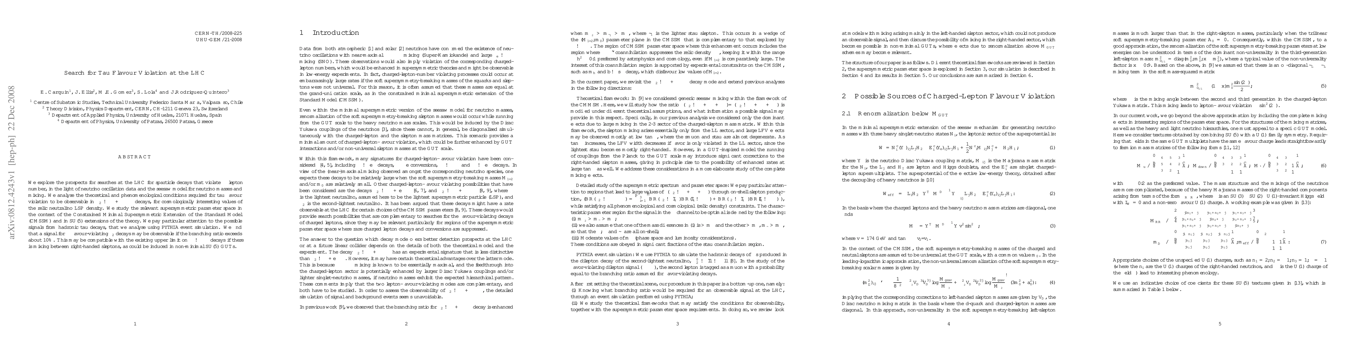 We explore the prospects for searches at the LHC for sparticle decays that violate $\tau$ lepton number, in the light of neutrino oscillation data and the seesaw model for neutrino masses and mixing. We analyse the theoretical and phenomenological conditions required for tau flavour violation to be observable in \chi_2 \to \chi + \tau^\pm \mu^\mp decays, for cosmologically interesting values of the relic neutralino LSP density. We study the relevant supersymmetric parameter space in the context of the Constrained Minimal Supersymmetric Extension of the Standard Model (CMSSM) and in SU(5) extensions of the theory. We pay particular attention to the possible signals from hadronic tau decays, that we analyse using PYTHIA event simulation. We find that a signal for \tau flavour-violating \chi_2 decays may be observable if the branching ratio exceeds about 10%. This may be compatible with the existing upper limit on \tau \to \mu \gamma decays if there is mixing between right-handed sleptons, as could be induced in non-minimal SU(5) GUTs.