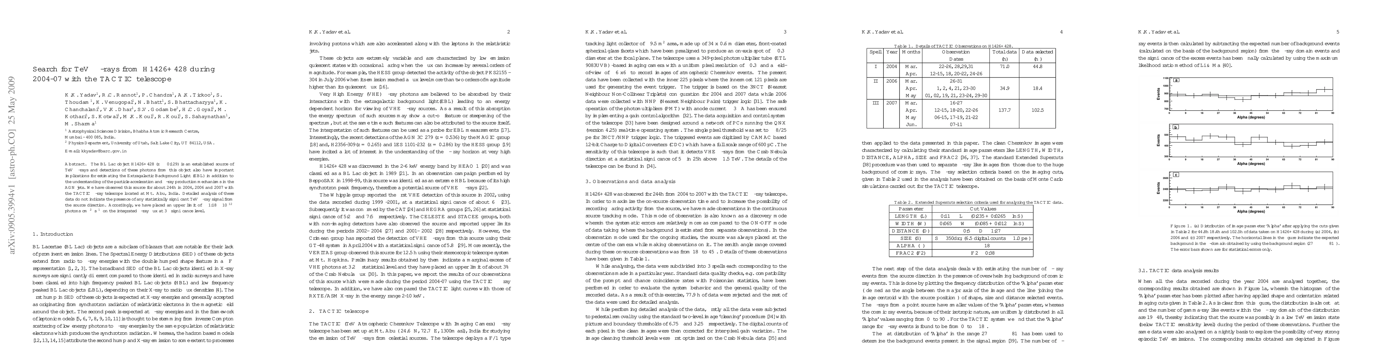 The BL Lac object H1426+428 ($z\equiv 0.129$) is an established source of TeV $\gamma$-rays and detections of these photons from this object also have important implications for estimating the Extragalactic Background Light (EBL) in addition to the understanding of the particle acceleration and $\gamma$-ray production mechanisms in the AGN jets. We have observed this source for about 244h in 2004, 2006 and 2007 with the TACTIC $\gamma$-ray telescope located at Mt. Abu, India. Detailed analysis of these data do not indicate the presence of any statistically significant TeV $\gamma$-ray signal from the source direction. Accordingly, we have placed an upper limit of $\leq1.18\times10^{-12}$ $photons$ $cm^{-2}$ $s^{-1}$ on the integrated $\gamma$-ray flux at 3$\sigma$ significance level.