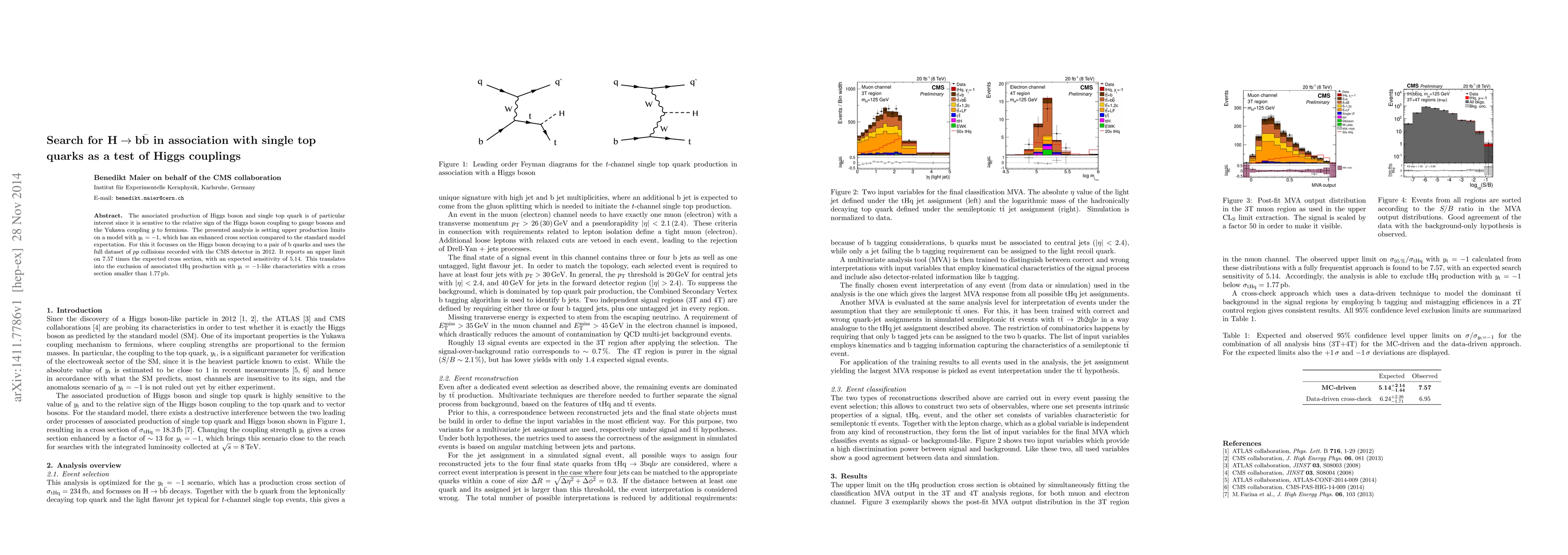 This paper investigates the associated production of Higgs bosons and single top quarks to test Higgs couplings, focusing on a model where the top Yukawa coupling is negative. Using the full 2012 CMS dataset, the analysis sets an upper limit on the production cross section, excluding tHq production with such characteristics below 1.77 pb.