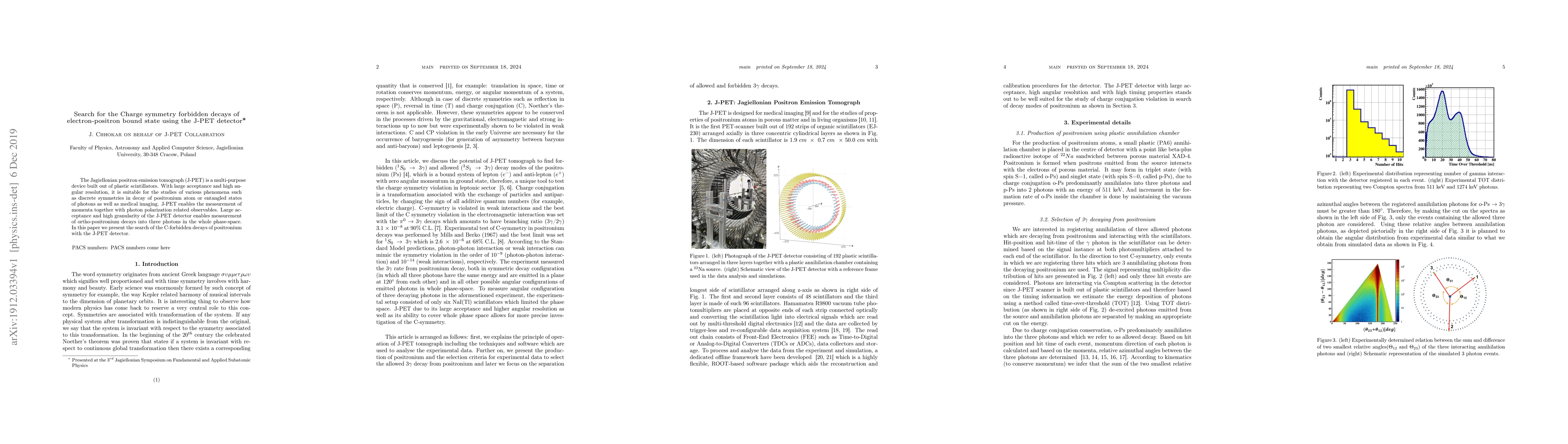 Researchers used the J-PET detector to search for C-forbidden decays of positronium, a bound state of electron and positron, finding no evidence of such decays. The study showcases the detector's capabilities in measuring various phenomena related to discrete symmetries and photon entanglement.