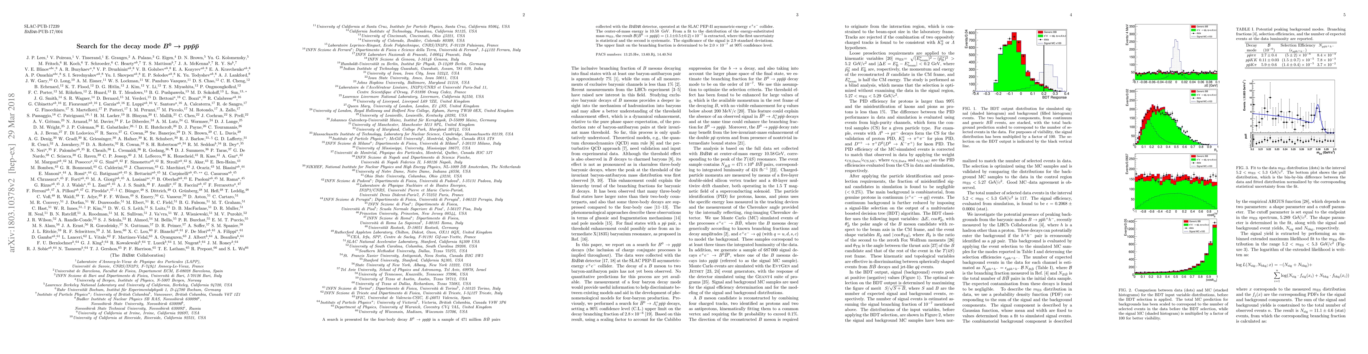 This study investigates the rare four-body decay $B^0\rightarrow p p \bar{p} \bar{p}$ using data from the BaBar detector, finding a branching fraction of $(1.1 \pm 0.5 \pm 0.2) \times 10^{-7}$ with a $2.9$ standard deviation signal significance, and setting an upper limit of $2.0 \times 10^{-7}$ at $90\%$ confidence level.