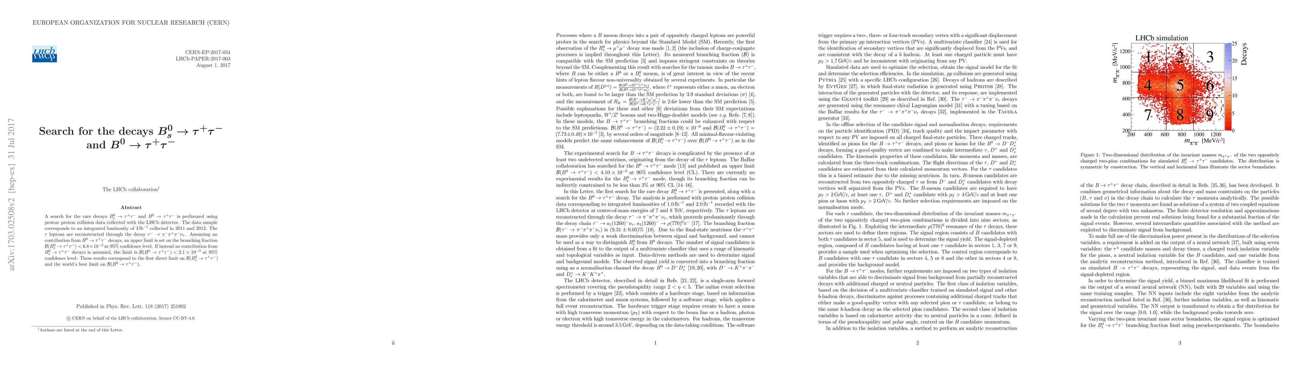 Researchers have set new limits on rare B-s meson decays to tau leptons, finding no evidence of these decays with a 95% confidence level.