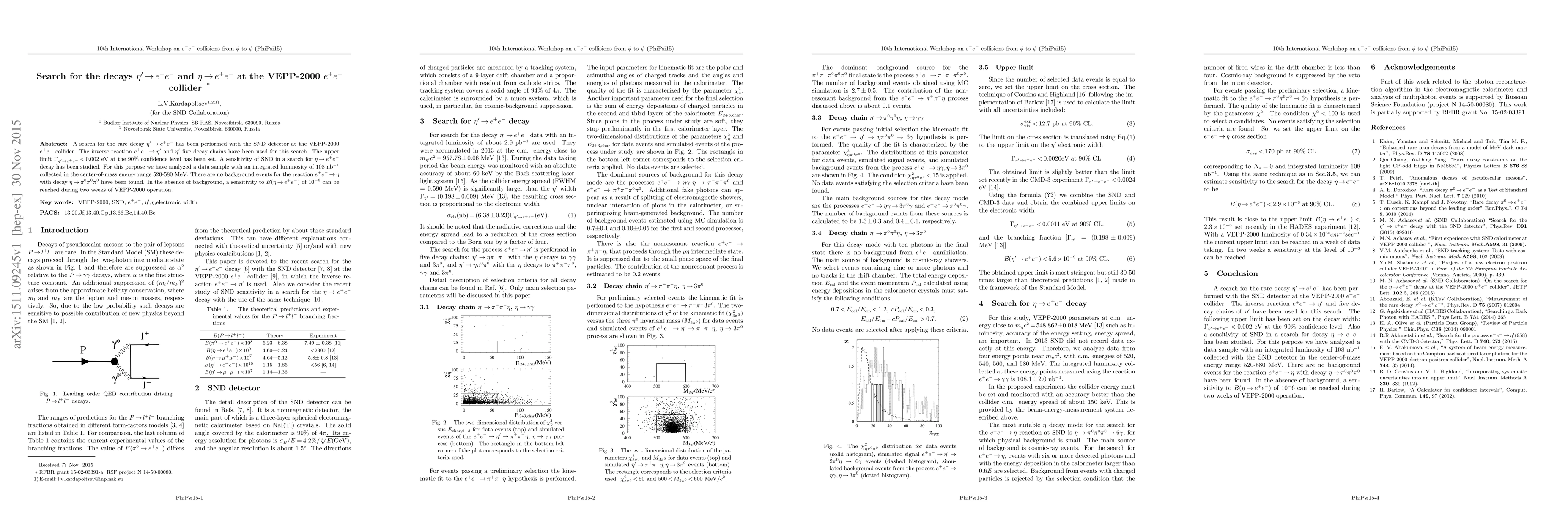 A search for the rare decay $\eta^{\prime} \to e^+e^-$ has been performed with the SND detector at the VEPP-2000 $e^+e^-$ collider. The inverse reaction $e^+e^- \to \eta^{\prime}$ and $\eta^{\prime}$ five decay chains have been used for this search. The upper limit $\Gamma_{\eta^{\prime} \to e^+e^-}<0.002$ eV at the 90\% confidence level has been set. A sensitivity of SND in a search for $\eta \to e^+e^-$ decay has been studied. For this perpose we have analyzed a data sample with an integrated luminosity of 108 nb$^{-1}$ collected in the center-of-mass energy range 520-580 MeV. There are no background events for the reaction $e^+e^- \to \eta$ with decay $\eta \to \pi^0\pi^0\pi^0$ have been found. In the absence of background, a sensitivity to $B(\eta \to e^+e^-)$ of 10$^{-6}$ can be reached during two weeks of VEPP-2000 operation.