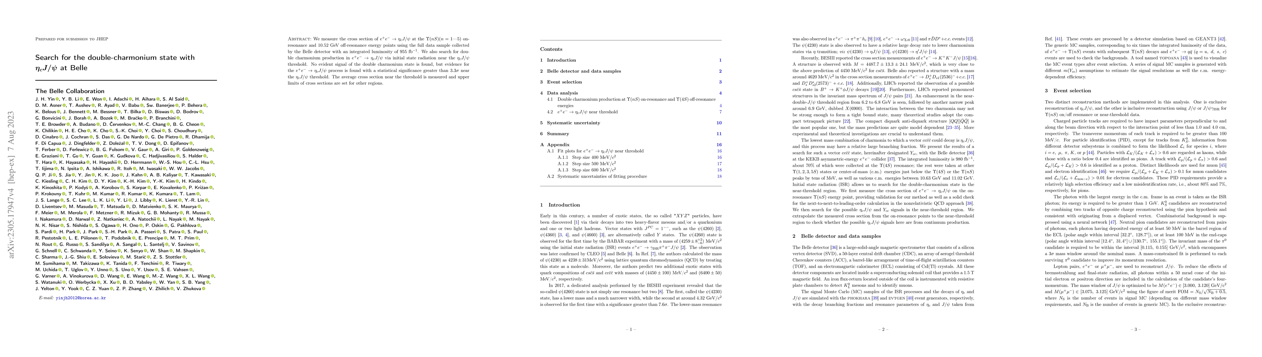 The Belle experiment measured the cross section for $e^+e^-\rightarrow\eta_c J/\psi$ at various energy levels, finding evidence for the process with a $3.3\sigma$ significance near the threshold, but no evidence for a double-charmonium state. Upper limits for cross sections in other regions were established.