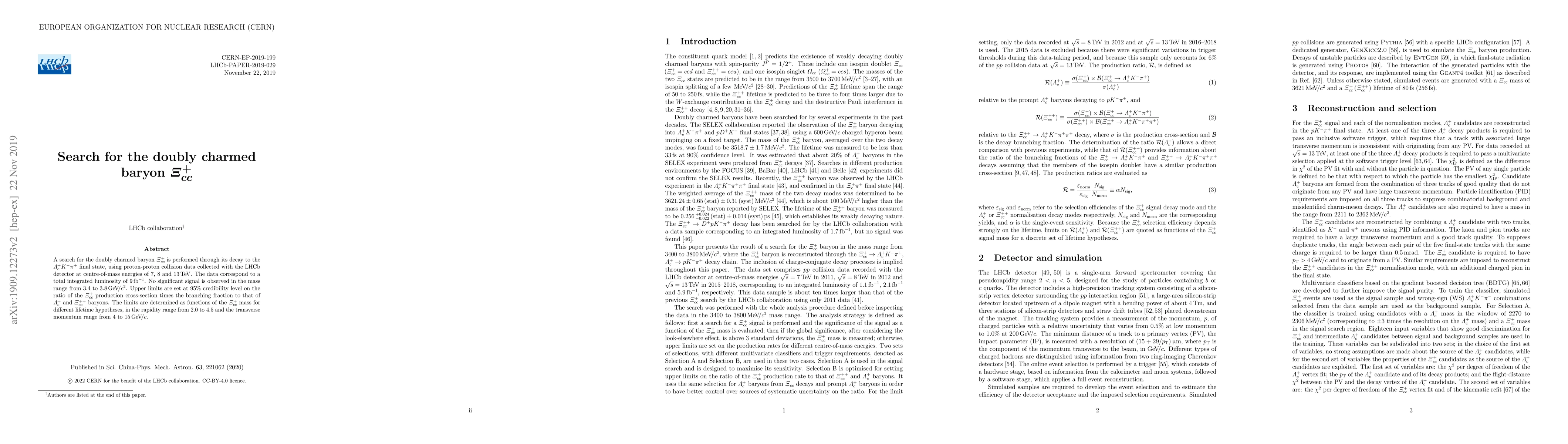 The LHCb experiment searched for the doubly charmed baryon $\Xi_{cc}^{+}$ in proton-proton collisions at the LHC, but no significant signal was observed. Upper limits on its production cross-section were set at a 95% confidence level.