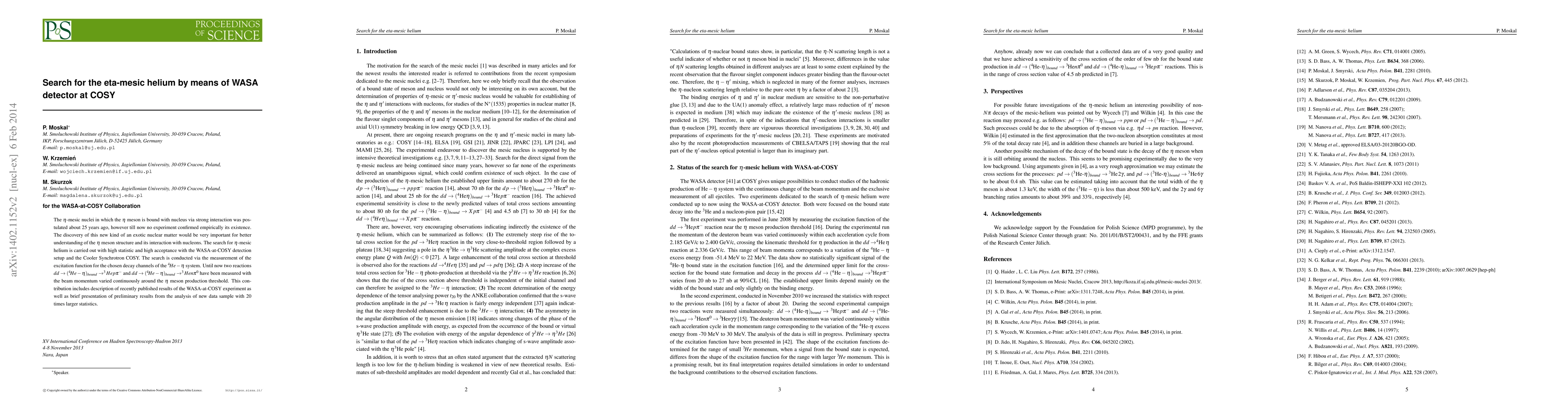 Researchers used the WASA detector at COSY to search for eta-mesic helium, a hypothetical form of exotic nuclear matter. They found no evidence of its existence through measuring excitation functions of the 4He-eta system.