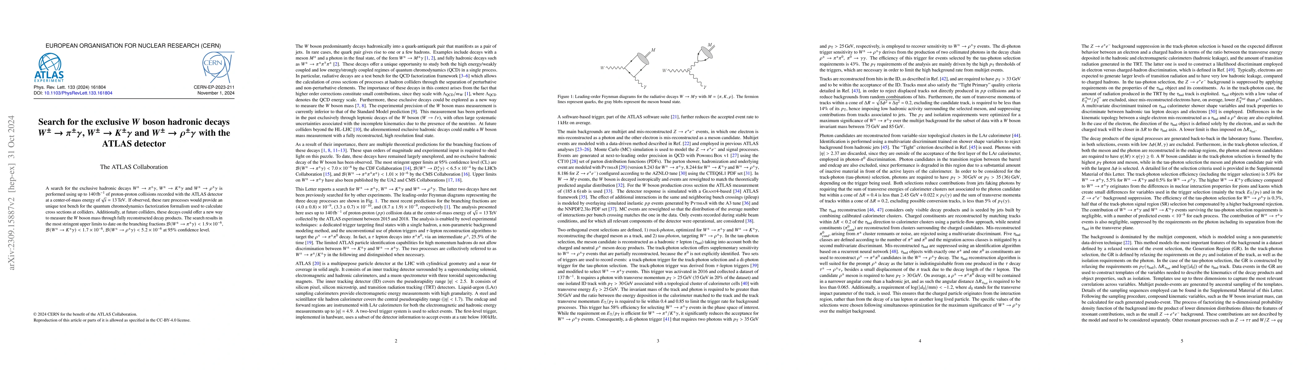 This paper reports a search for rare exclusive hadronic decays of $W$ bosons using the ATLAS detector at the LHC, setting stringent upper limits on the branching fractions for $W^{\pm}\to \pi^{\pm}\gamma$, $W^{\pm}\to K^{\pm}\gamma$, and $W^{\pm}\to \rho^{\pm}\gamma$ processes. The findings provide insights into quantum chromodynamics and $W$ boson properties.