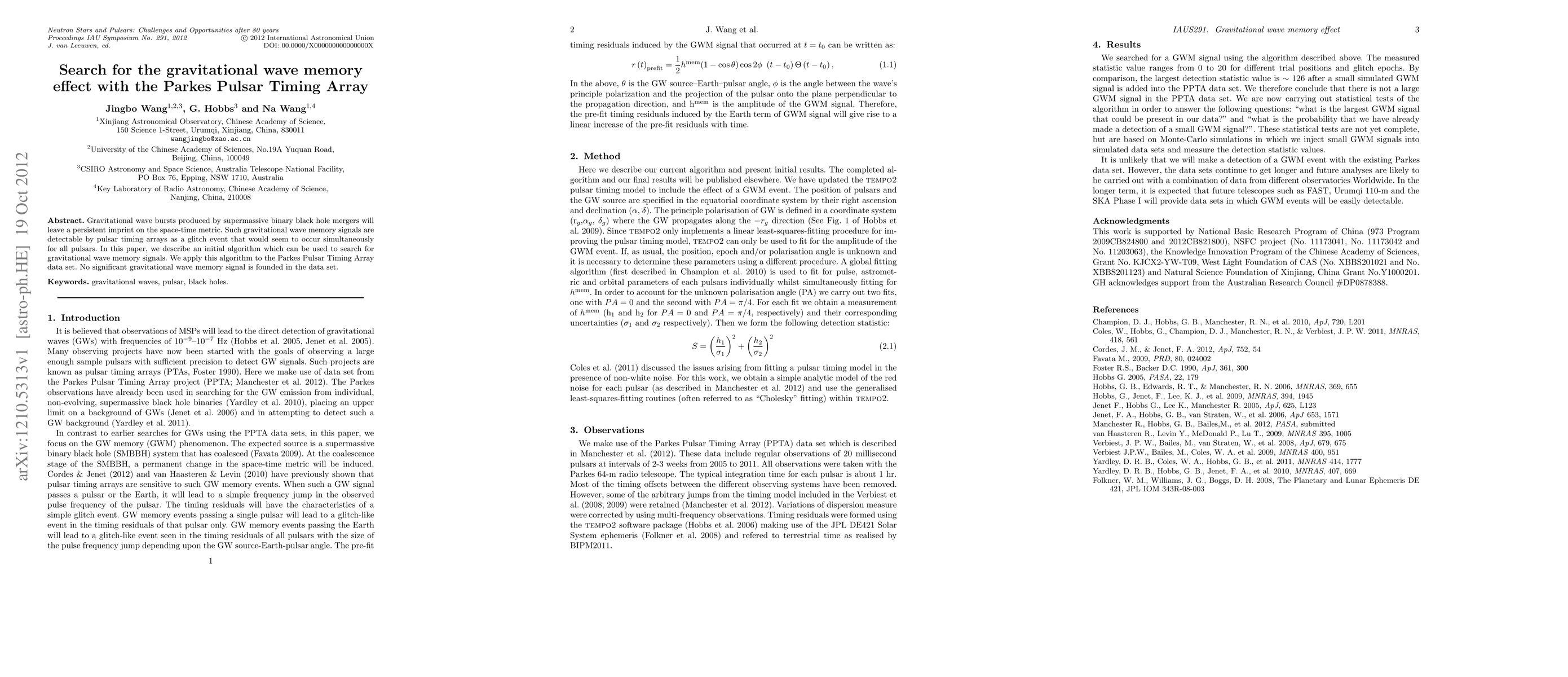 This paper explores the search for gravitational wave memory signals using the Parkes Pulsar Timing Array, finding no significant evidence of these persistent imprints from supermassive binary black hole mergers in the analyzed data set. An initial algorithm for detecting such memory signals is presented.