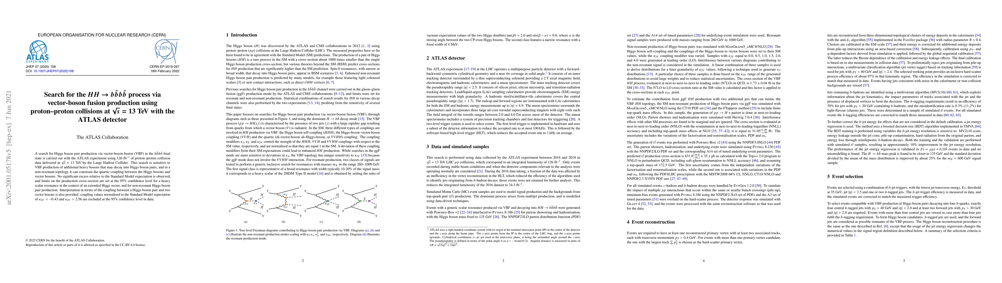The ATLAS experiment searched for Higgs boson pair production via vector-boson fusion in the $b\bar{b}b\bar{b}$ final state using 126 fb$^{-1}$ of proton-proton collision data at $\sqrt{s} = 13$ TeV. No significant excess was observed, leading to limits on the production cross-section and exclusion of certain values for the quartic coupling between Higgs bosons and vector bosons.