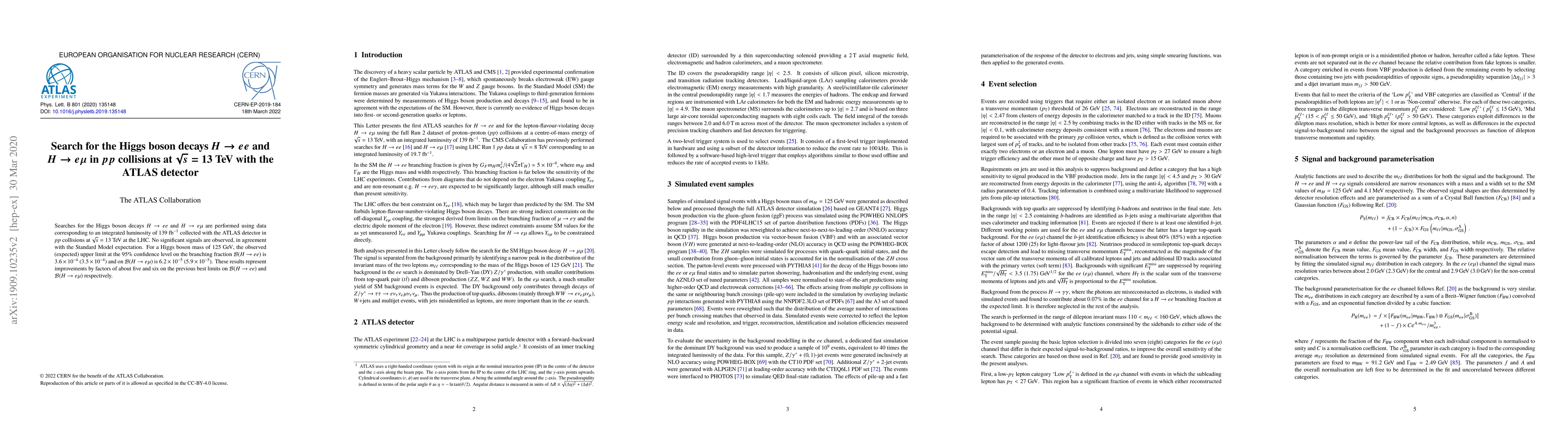 The ATLAS experiment searched for Higgs boson decays to $ee$ and $e\mu$ in $pp$ collisions at $\sqrt{s} = 13$ TeV, observing no significant signals and setting improved upper limits on the branching fractions. These limits are consistent with Standard Model predictions.
