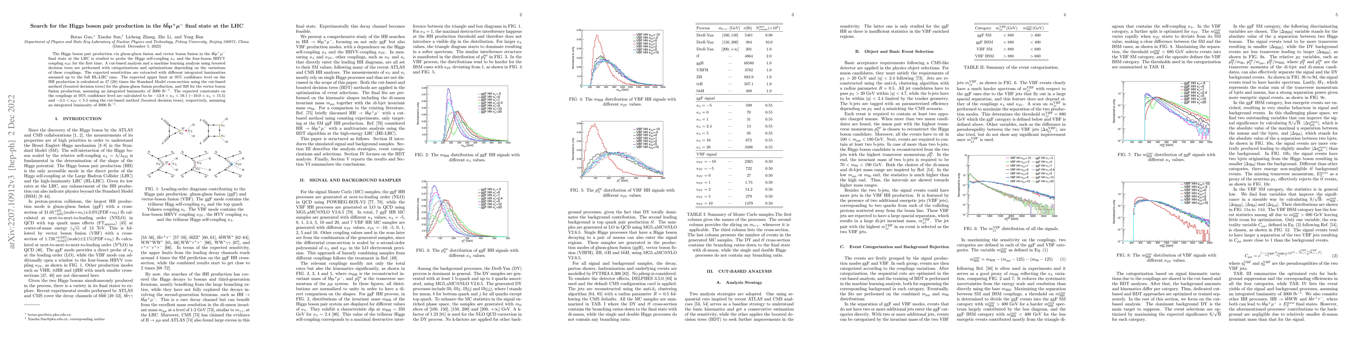 This paper investigates Higgs boson pair production in the $b\bar{b}\mu^+\mu^-$ final state at the LHC to probe the Higgs self-coupling and four-boson coupling, employing both cut-based and machine learning analyses. Expected upper limits and constraints on these couplings are calculated for various integrated luminosities.