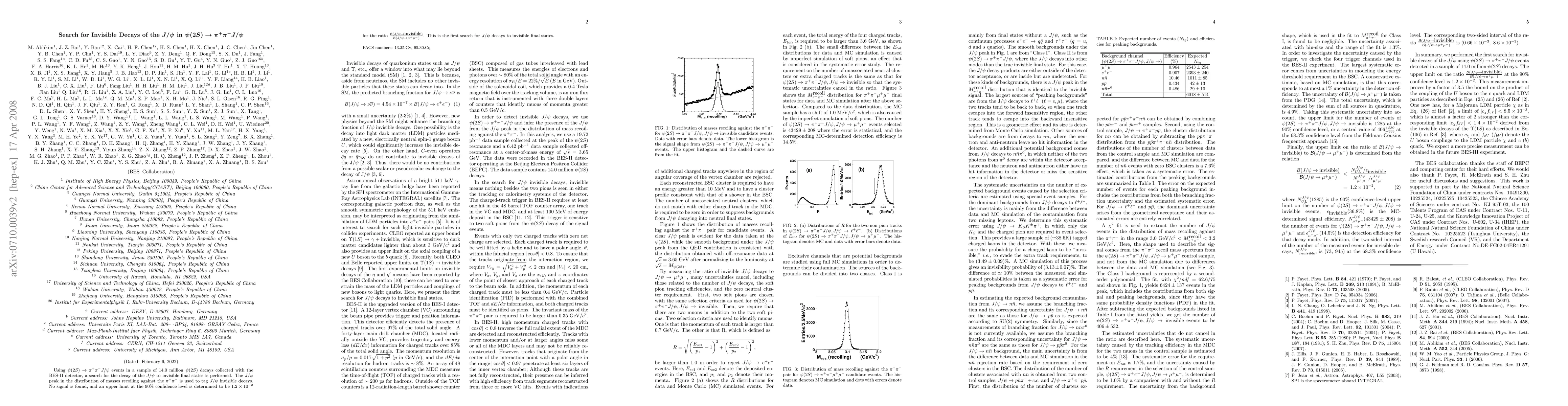 Using 14.0 million $\psi(2S) events collected with the BES-II detector, a search for the decay of the $\jpsi$ to an invisible final state in $\psipto$ is performed. The $\jpsi$ peak in the distribution of mass recoiling against the $\pi^+\pi^-$ is used to tag $\psi$ invisible decay. No signal is found, and an upper limit at the 90% confidence level is determined to be $1.2\times 10^{-2}$ for the ratio $\frac{{\cal B}(\jpsi\ar {invisible})}{{\cal B}(\jpsi\ar\mu^+\mu^-)}$. This is the first search for $J/\psi$ decay to an invisible final state.