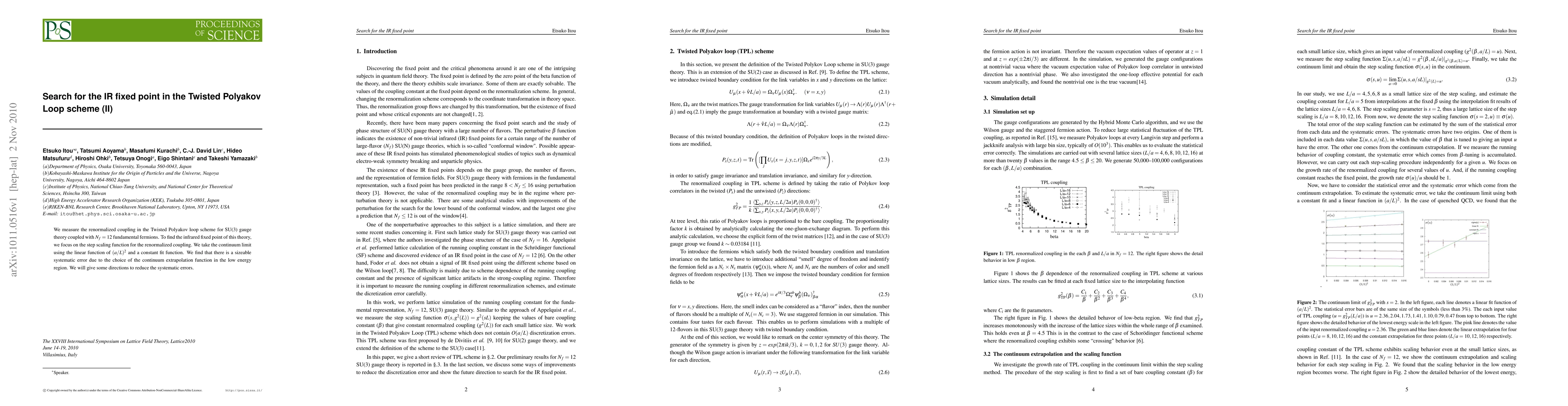 We measure the renormalized coupling in the Twisted Polyakov loop scheme for SU(3) gauge theory coupled with $N_f=12$ fundamental fermions. To find the infrared fixed point of this theory, we focus on the step scaling function for the renormalized coupling. We take the continuum limit using the linear function of $(a/L)^2$ and a constant fit function. We find that there is a sizeable systematic error due to the choice of the continuum extrapolation function in the low energy region. We will give some directions to reduce the systematic errors.