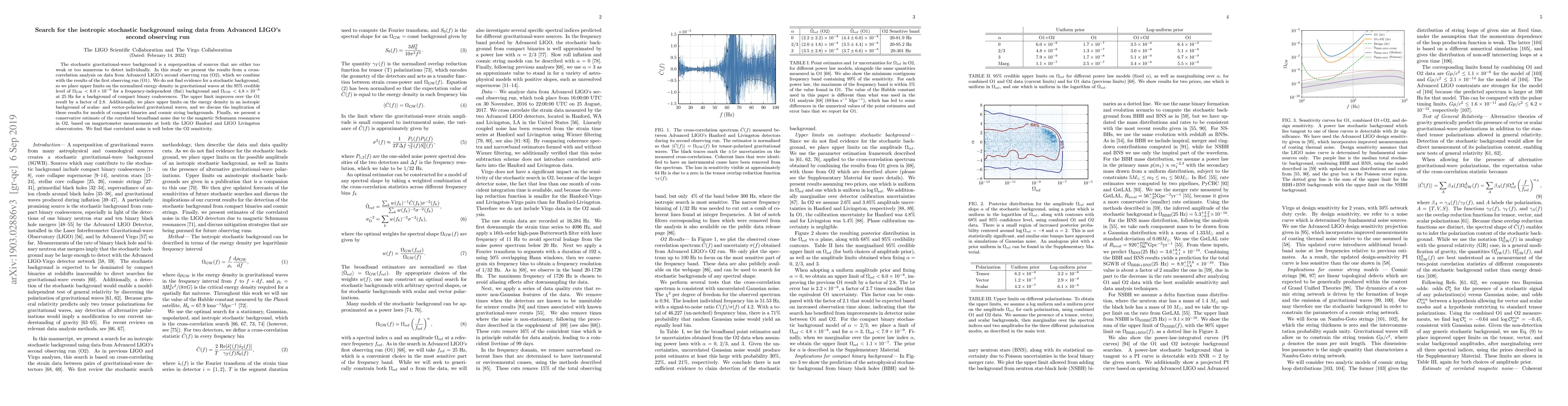 Researchers analyzed data from LIGO's second observing run to search for the isotropic stochastic background, finding no evidence of a gravitational wave signal and placing upper limits on its energy density.