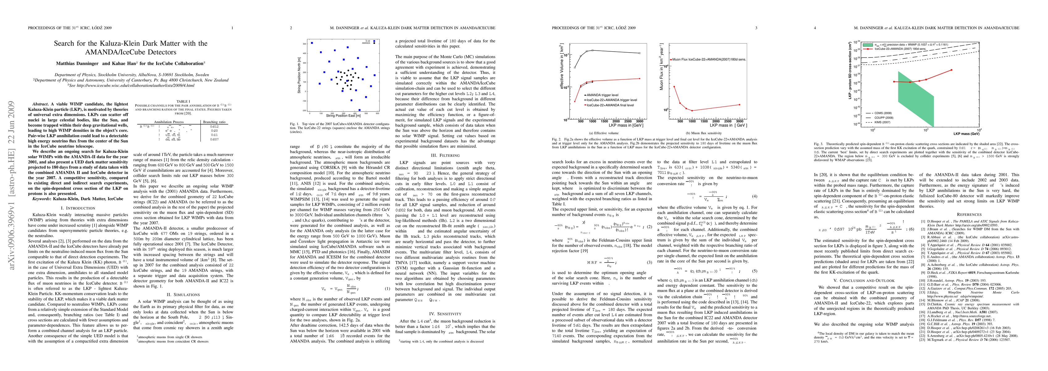 This paper explores the search for Kaluza-Klein dark matter candidates using the AMANDA/IceCube detectors, focusing on the lightest Kaluza-Klein particle (LKP) that could be trapped in the Sun's core. The study presents results from AMANDA-II data and projects sensitivity for combined AMANDA II and IceCube data, aiming to detect high-energy neutrinos from LKP annihilation.