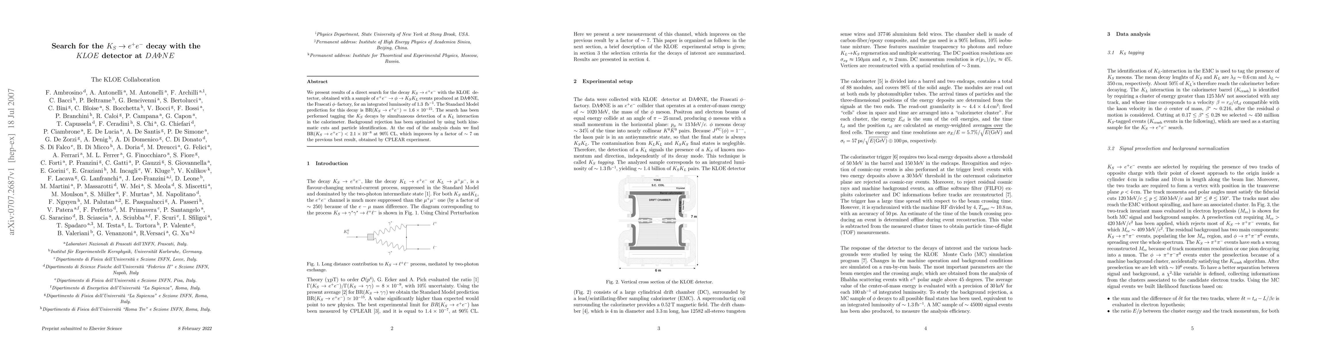 Researchers at KLOE detector searched for the decay KS --> e+e- with a sample of 1.3fb^-1 data and found a branching ratio of < 2.1*10^-8 at 90% CL, improving on previous results by a factor of ~7.