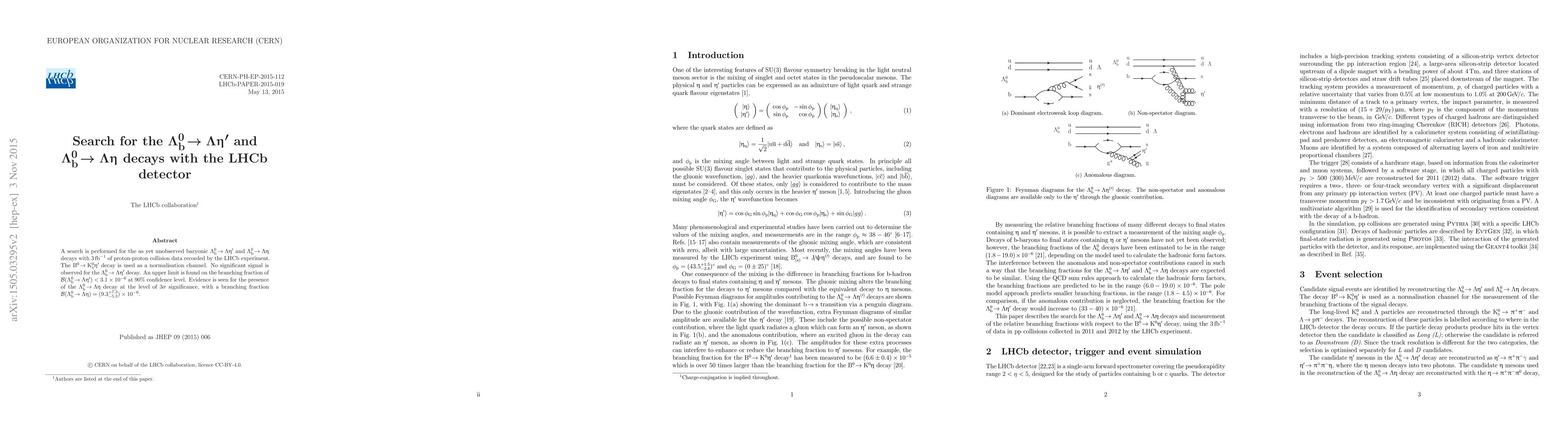 The LHCb experiment searched for the unobserved decays $\Lambda_b \rightarrow \Lambda \eta^\prime$ and $\Lambda_b \rightarrow \Lambda \eta$ using 3$fb^{-1}$ of proton-proton collision data. No significant signal was found for $\Lambda_b \rightarrow \Lambda \eta^\prime$, while evidence for $\Lambda_b \rightarrow \Lambda \eta$ was observed at $3\sigma$ significance, with a branching fraction of $(9.3^{+7.3}_{-5.3})\times10^{-6}$.