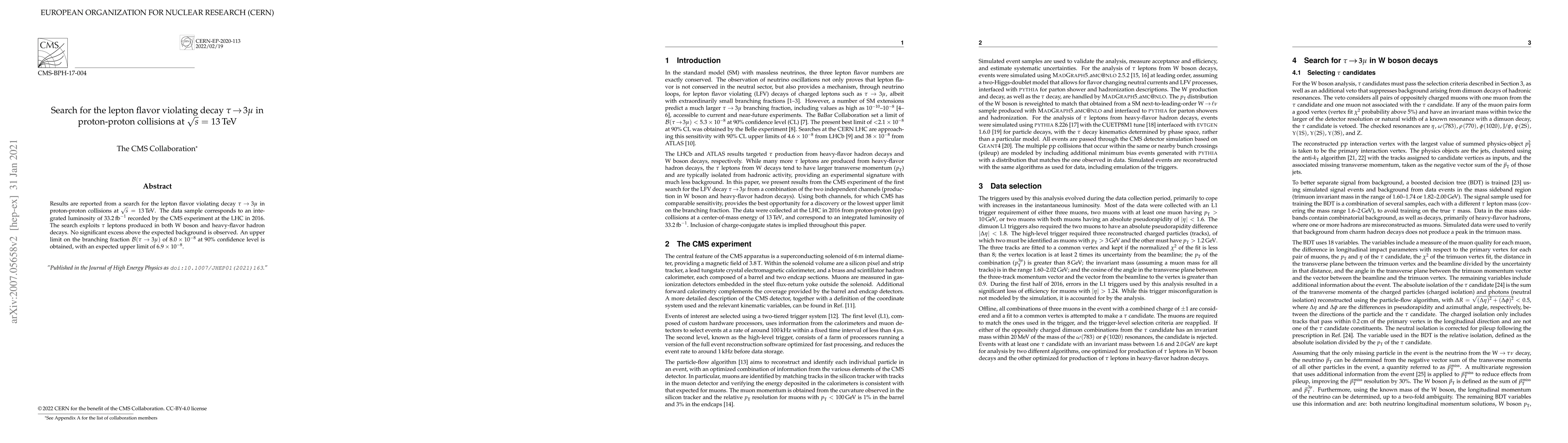 This paper reports a search for the lepton flavor violating decay $\tau \to 3\mu$ using proton-proton collision data at 13 TeV from the CMS experiment at the LHC. No significant excess is observed, leading to an upper limit of 8.0 × 10$^{-8}$ on the branching fraction at 90% confidence level.