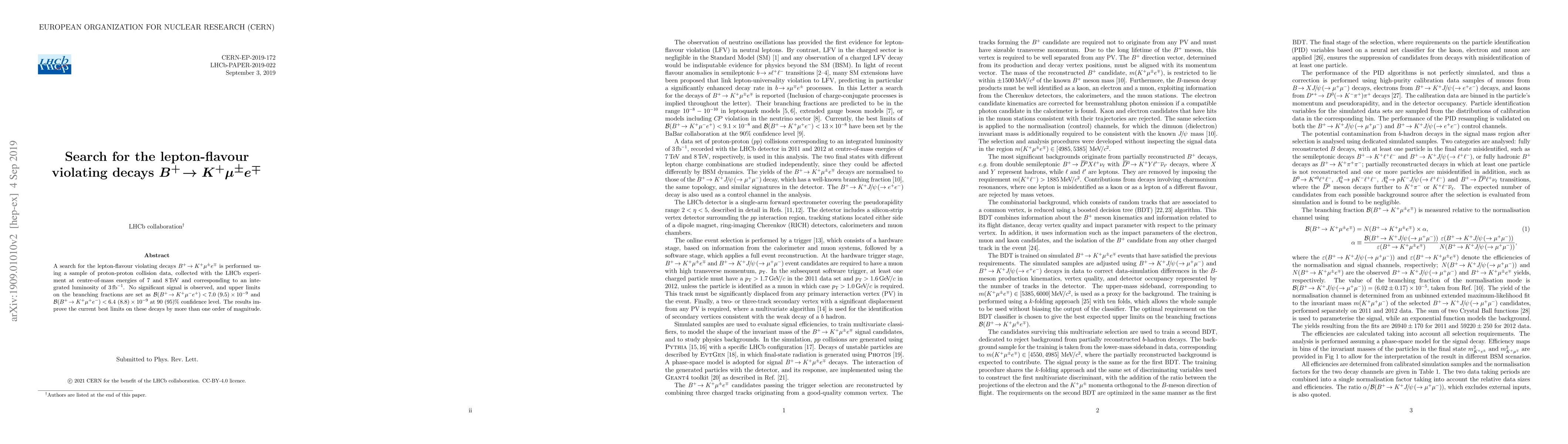 This study investigates lepton-flavour violating decays $B^+ \to K^+ {\mu}^{\pm} e^{\mp}$ using LHCb data at 7 and 8 TeV. No significant signal was found, setting improved upper limits on branching fractions by more than an order of magnitude.