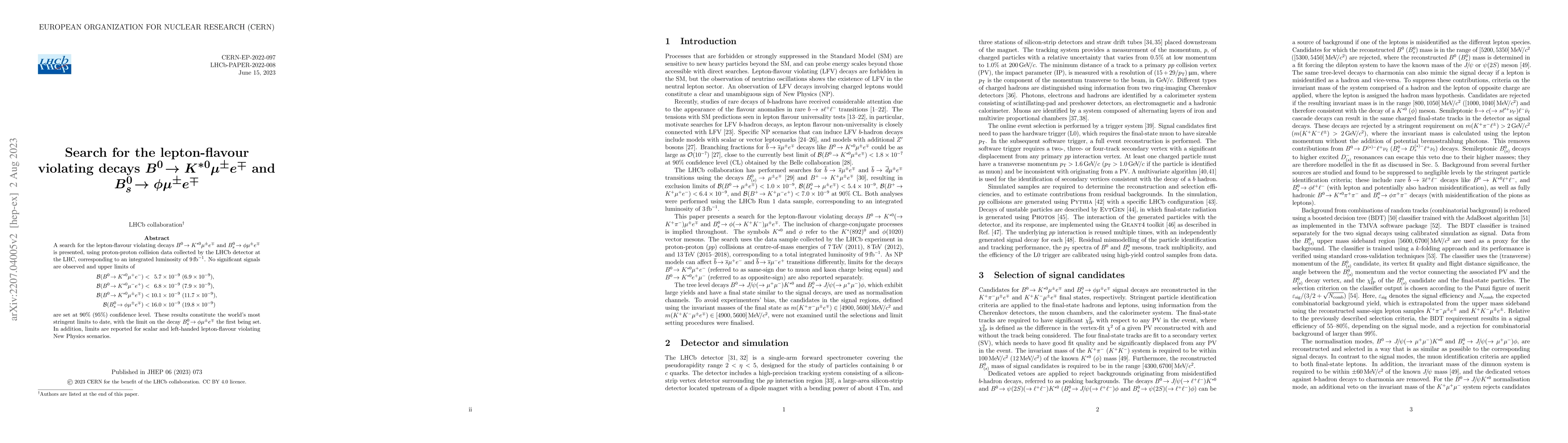 This paper reports a search for lepton-flavour violating decays in $B^0$ and $B_s^0$ mesons using LHCb data, finding no significant signals and setting stringent upper limits on their branching fractions, including the first limit for $B_s^0 \to \phi \mu^\pm e^\mp$.