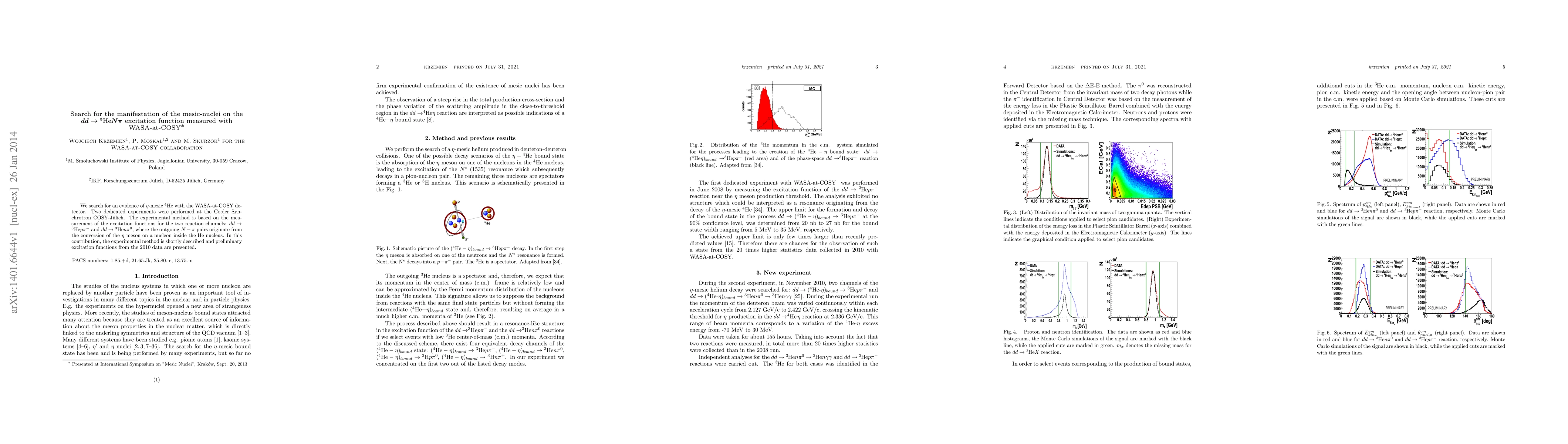 Researchers used the WASA-at-COSY detector to search for evidence of a mesic 4He particle in two nuclear reactions, finding preliminary data on its excitation function.