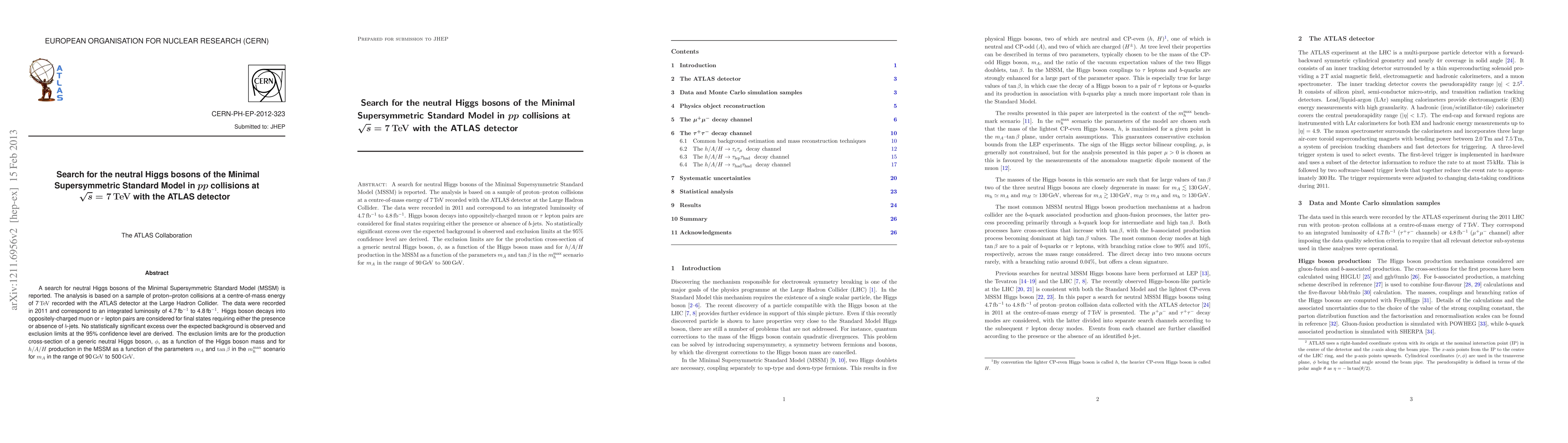 A search for neutral Higgs bosons of the Minimal Supersymmetric Standard Model (MSSM) is reported. The analysis is based on a sample of proton-proton collisions at a centre-of-mass energy of 7 TeV recorded with the ATLAS detector at the Large Hadron Collider. The data were recorded in 2011 and correspond to an integrated luminosity of 4.7 fb-1 to 4.8 fb-1. Higgs boson decays into oppositely-charged muon or tau lepton pairs are considered for final states requiring either the presence or absence of b-jets. No statistically significant excess over the expected background is observed and exclusion limits at the 95% confidence level are derived. The exclusion limits are for the production cross-section of a generic neutral Higgs boson, phi, as a function of the Higgs boson mass and for h/H/A production in the MSSM as a function of the parameters mA and tanbeta in the mh-max scenario for mA in the range of 90 GeV to 500 GeV.