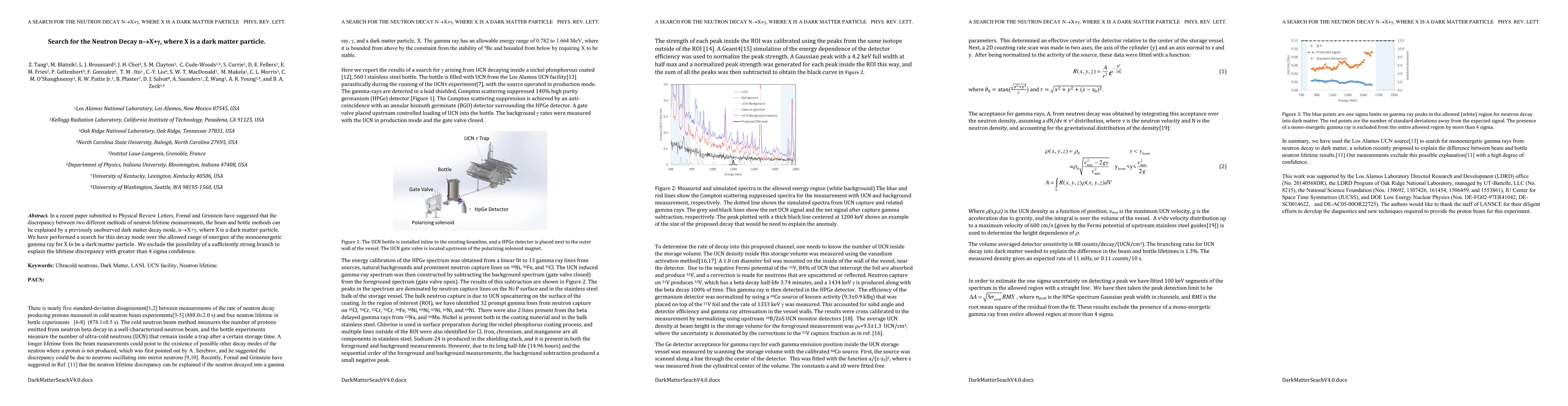 In a recent paper submitted to Physical Review Letters, Fornal and Grinstein have suggested that the discrepancy between two different methods of neutron lifetime measurements, the beam and bottle methods can be explained by a previously unobserved dark matter decay mode, n$\rightarrow$ X+$\gamma$ where X is a dark matter particle. We have performed a search for this decay mode over the allowed range of energies of the monoenergetic gamma ray for X to be a dark matter particle. We exclude the possibility of a sufficiently strong branch to explain the lifetime discrepancy with greater than 4 sigma confidence.