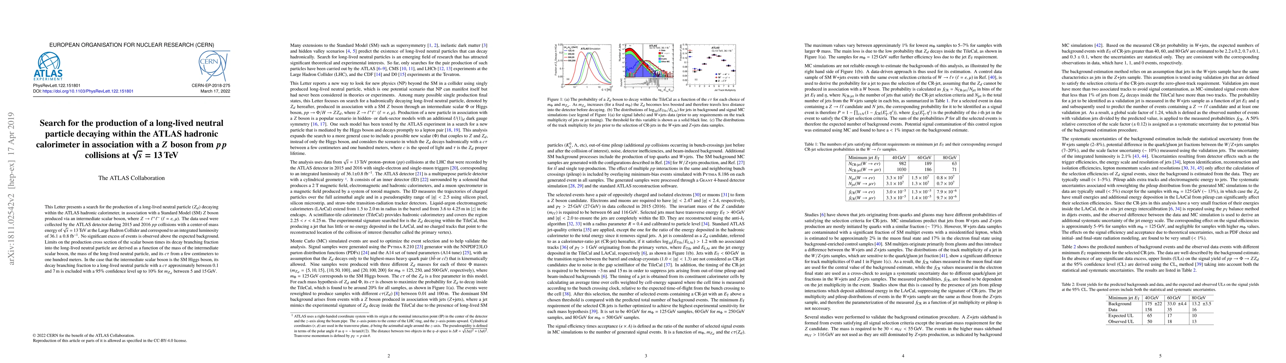This paper reports a search for long-lived neutral particles ($Z_d$) decaying within the ATLAS hadronic calorimeter in association with a $Z$ boson from $pp$ collisions at $\sqrt{s} = 13$ TeV. No significant excess is observed, leading to exclusion limits on the production of such particles.
