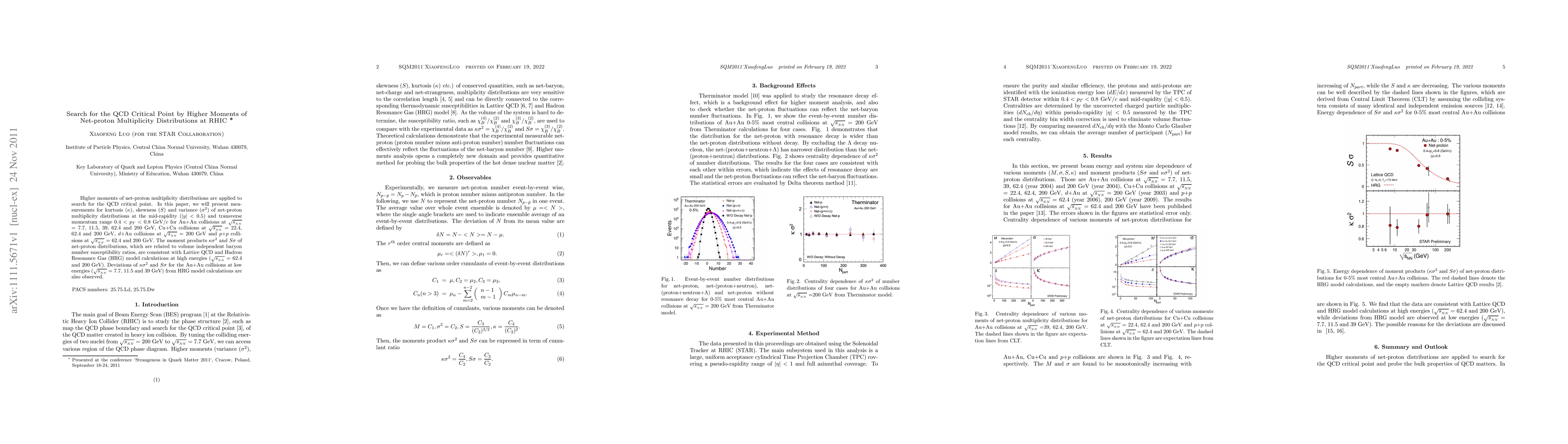 This paper investigates higher moments of net-proton multiplicity distributions to search for the QCD critical point in various heavy-ion collisions at different energies. The results show consistency with theoretical models at high energies but deviations at lower energies, suggesting potential evidence for the QCD critical point.