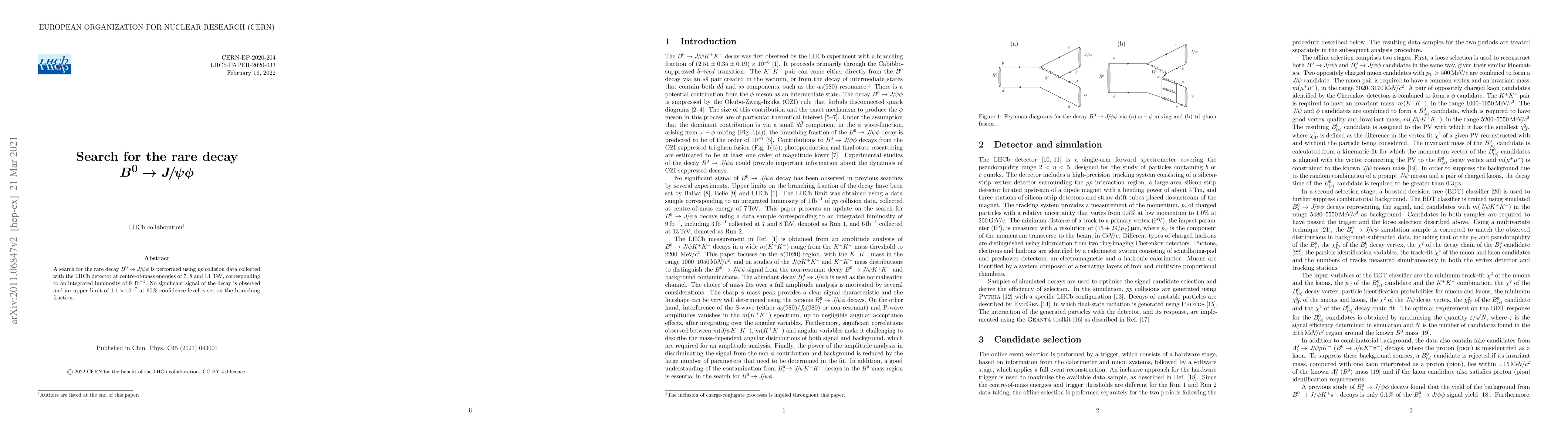 The research paper reports a search for the rare decay B^0 -> J/psi phi using pp collision data from LHCb detector at 7, 8, and 13 TeV, totaling 9 fb^-1. No significant signal was found, leading to a 90% confidence upper limit of 1.1 x 10^-7 set on the branching fraction.